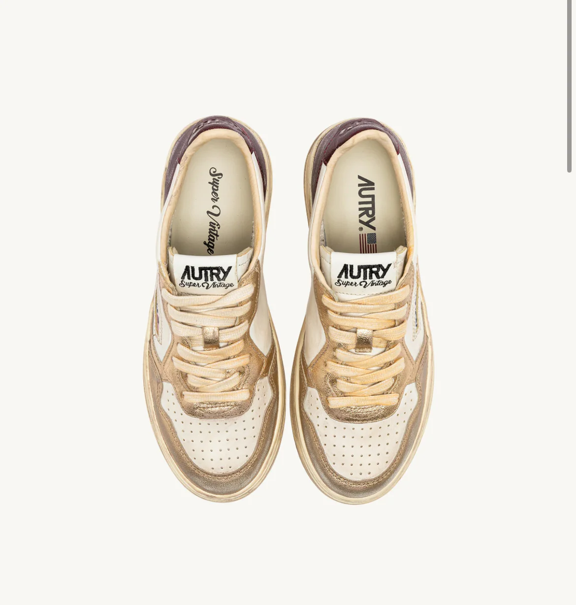 Cette basket pour femme est fabriquée en cuir souple avec un aspect usé qui combine le cuir blanc et les tons métalliques violet et or. L’insert latéral attire l’attention sur le logo Autry caractéristique. Le traitement exclusif utilisé pour créer le look vintage est entièrement Made in Italy.