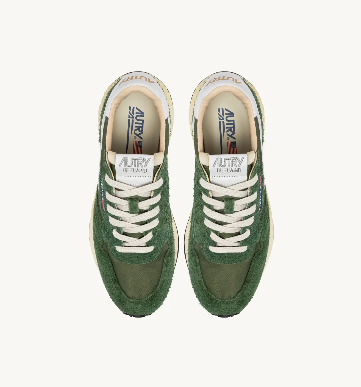 Innovante, légère et extrêmement flexible, Reelwind est la sneaker Autry inspirée du monde de la course à pied. Le modèle pour femme est composé d’un mélange de daim et de nylon noir avec un patch en cuir blanc sur les côtés.