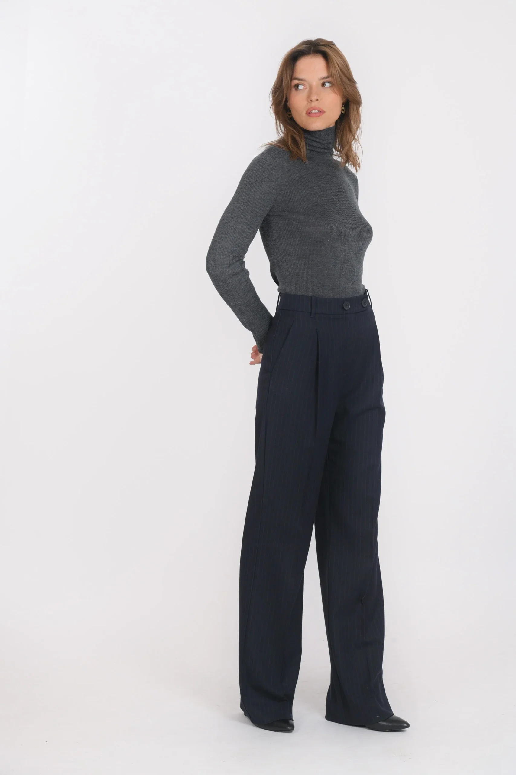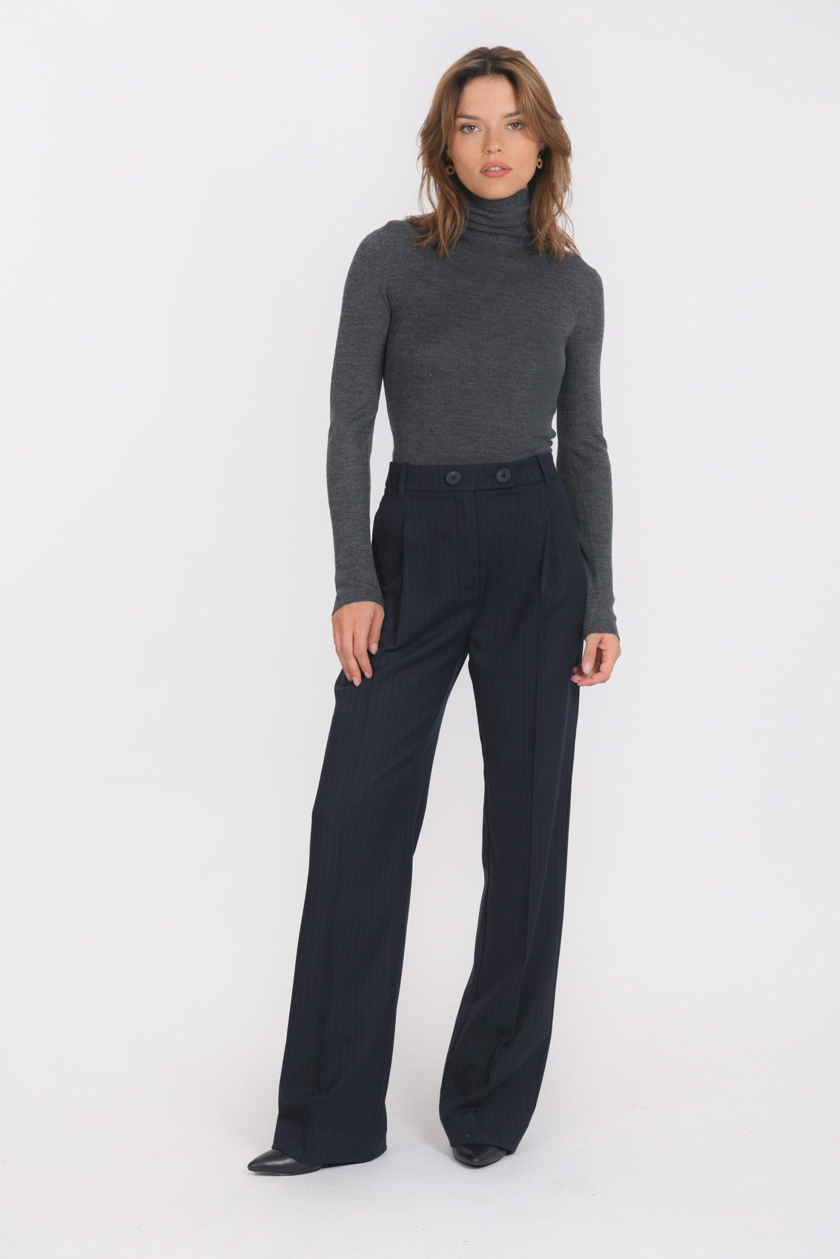 Taille haute, ceinture avec double boutonnage et passants