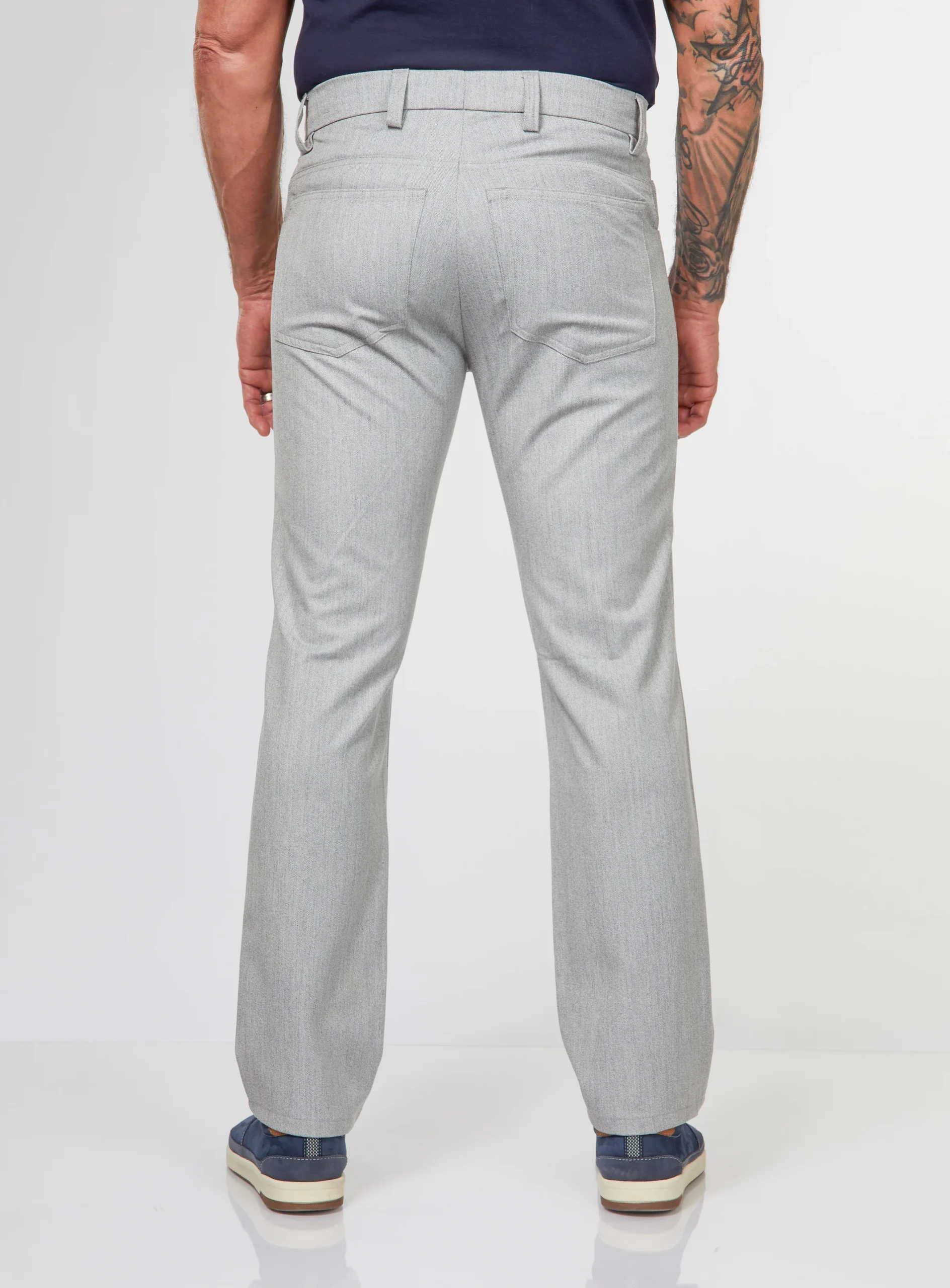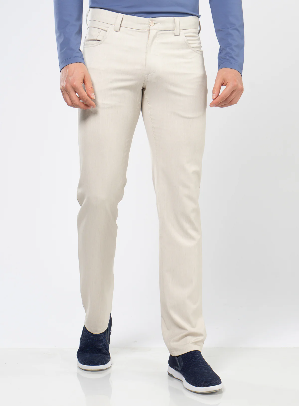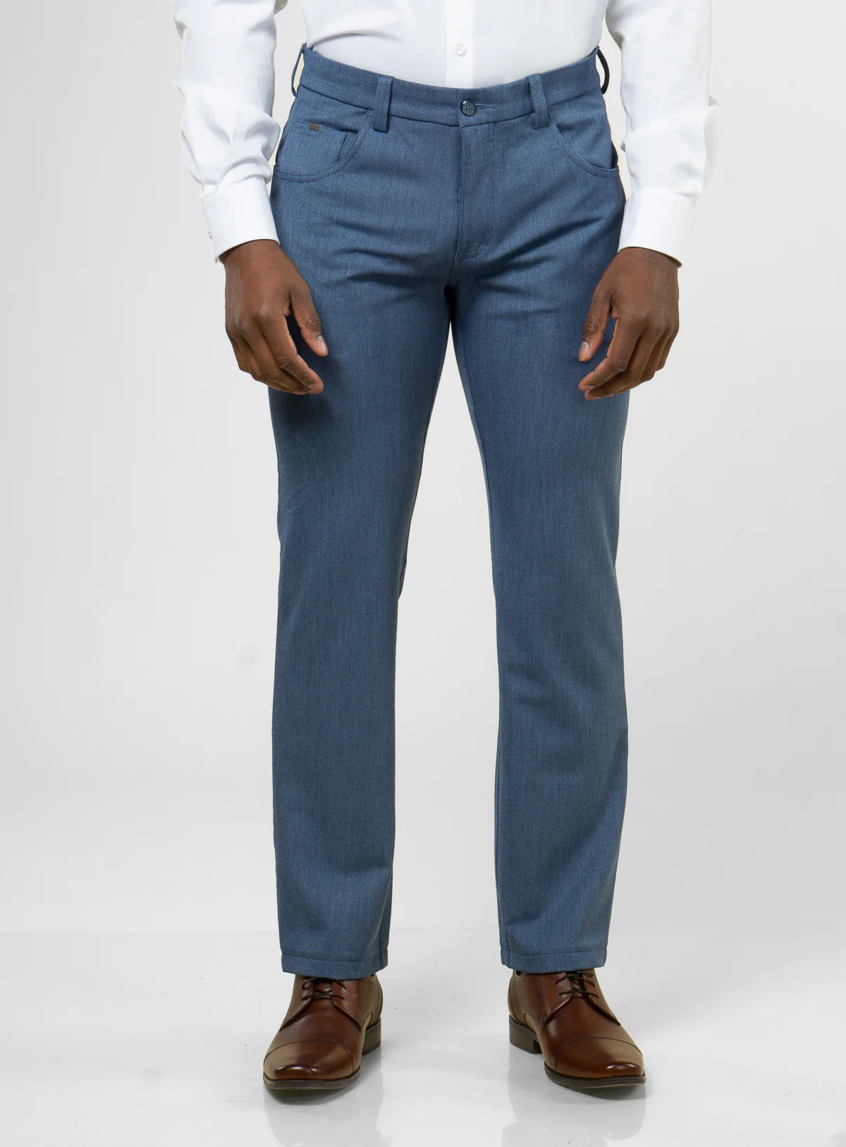 DESCRIPTION– Coupe semi-ajustée– Cinq poches– Tissu extensible– Tissage sergé – Longueur d’entrejambe : 34″ MATÉRIEL75% Polyester, 21% Viscose et 4% Élasthanne ENTRETIENNettoyer à secLaver à la machine à l’eau froidePas de blanchimentSécher à platRepasser au besoin