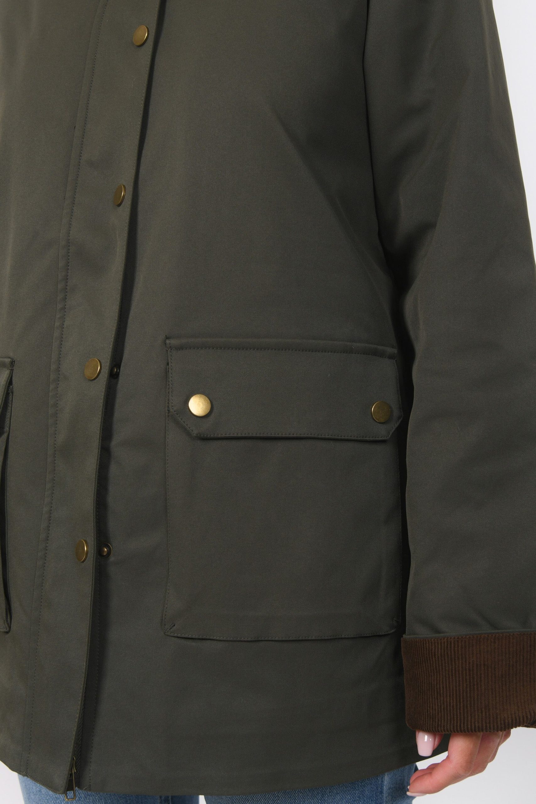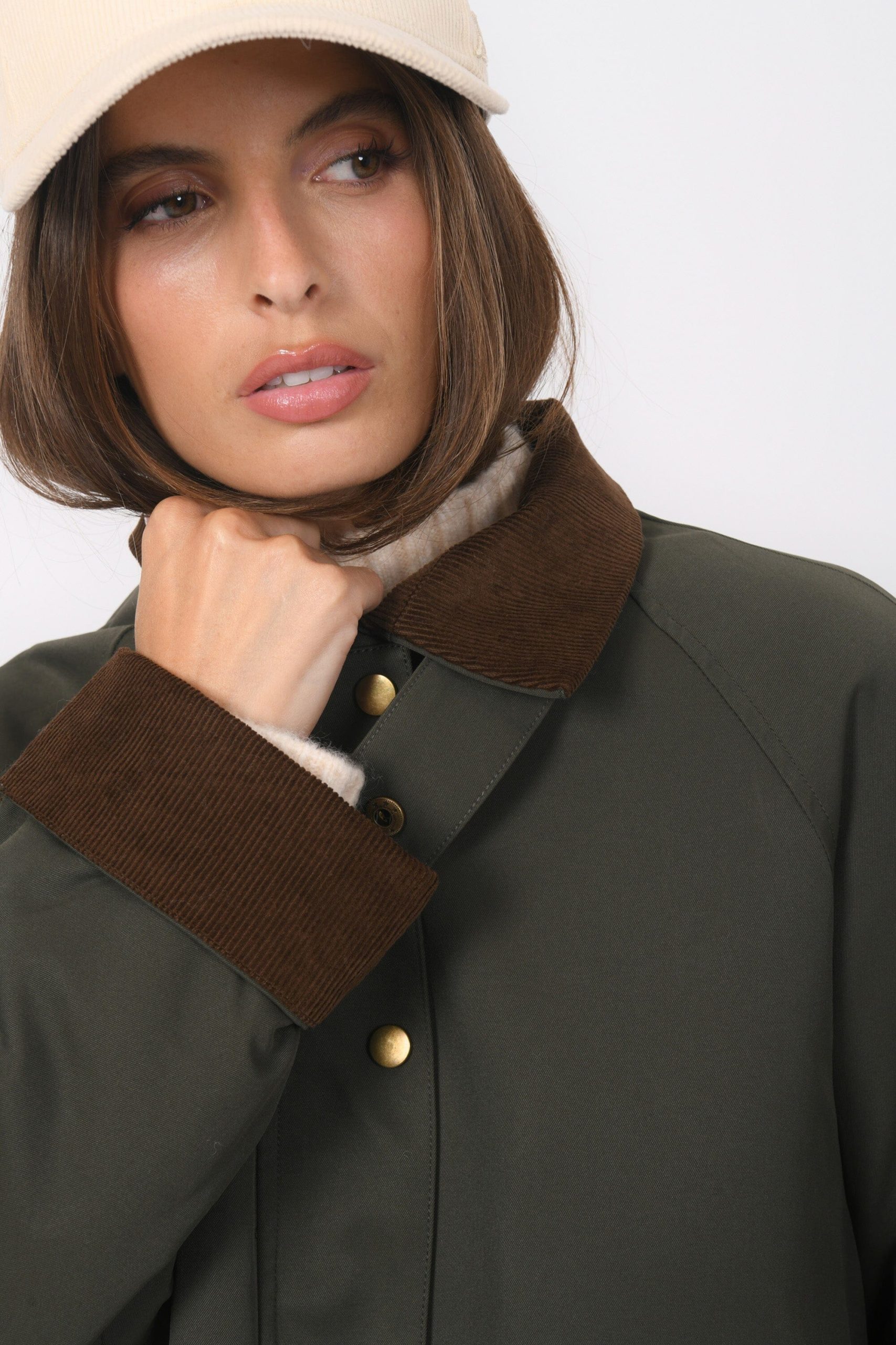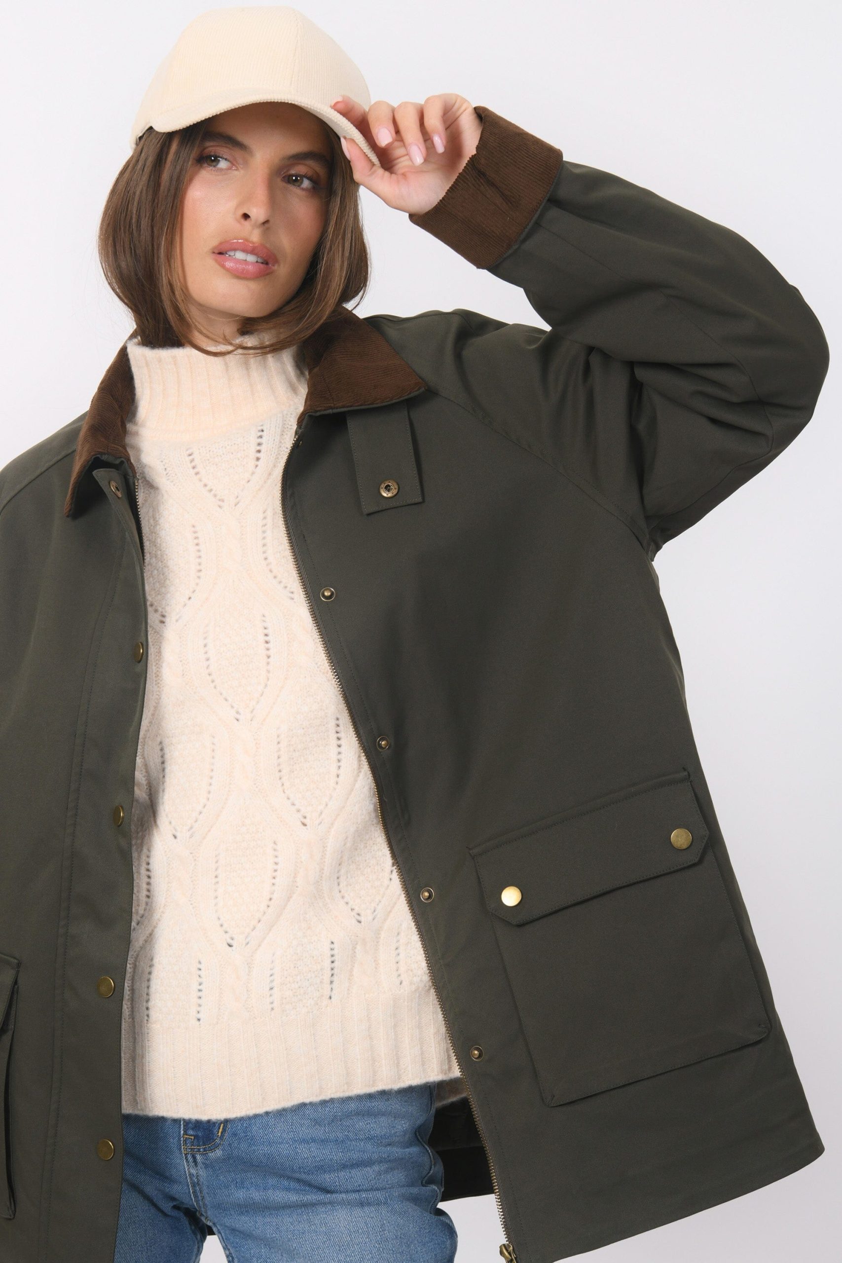 Brett, la parka au charme classiqueCol et revers des poignets en velours côtelé coloris contrastantFermée par un zip caché sous patte et des pressionsDeux grandes poches plaquées avec rabat fermé par des pressionsIntérieur matelasséLongueur 75cm en T36 Inès mesure 1m71 et porte un 36