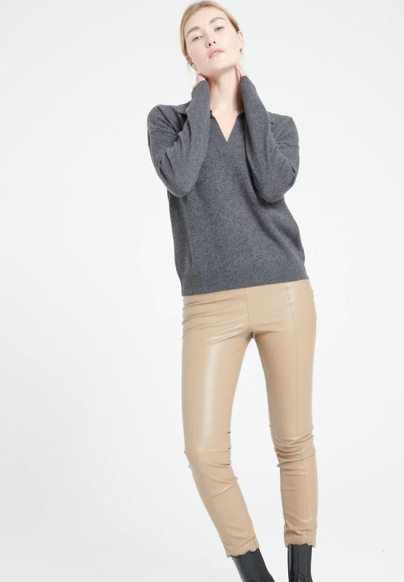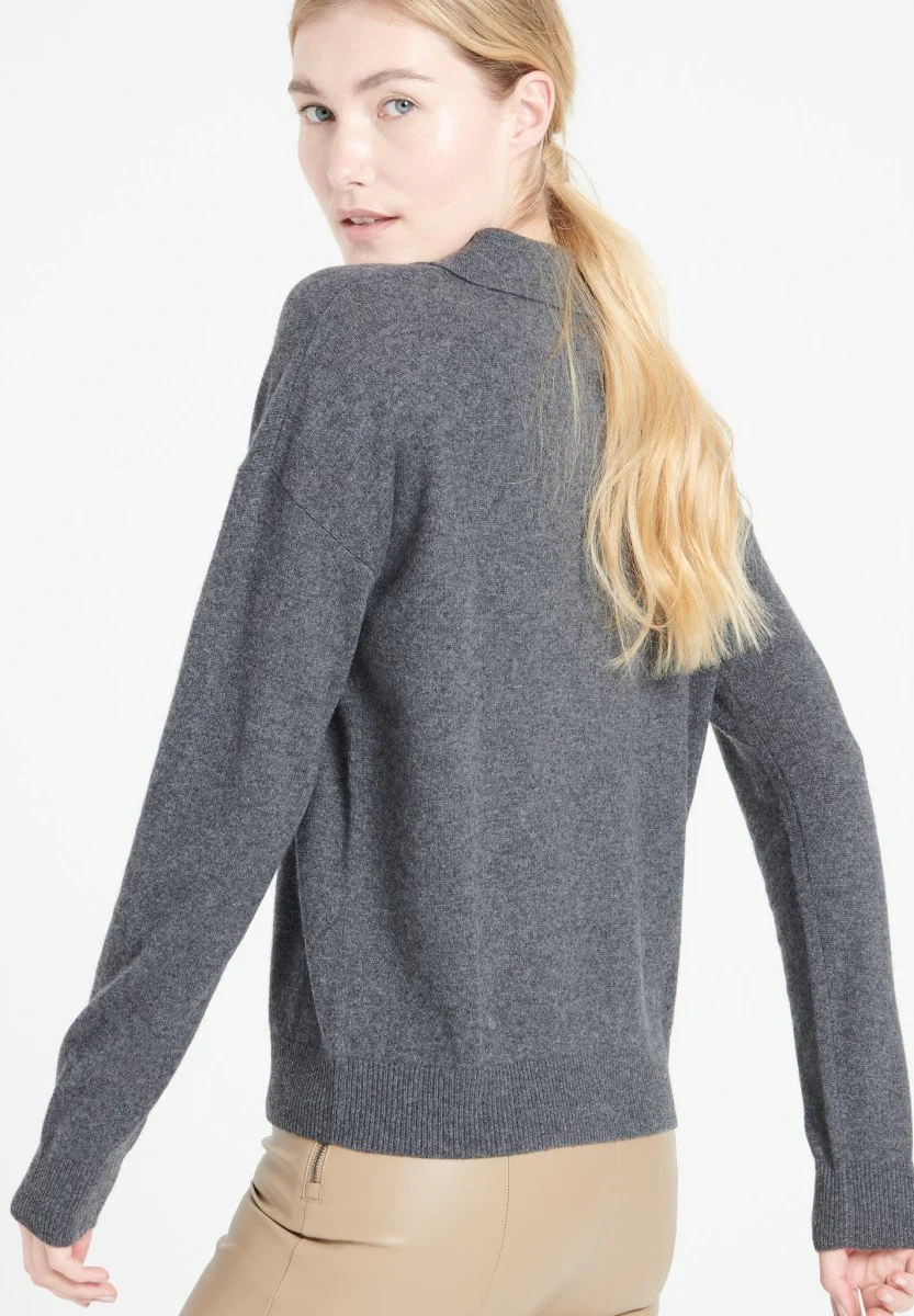 Polo manches longues femme en cachemire gris anthracite – MIA 3
