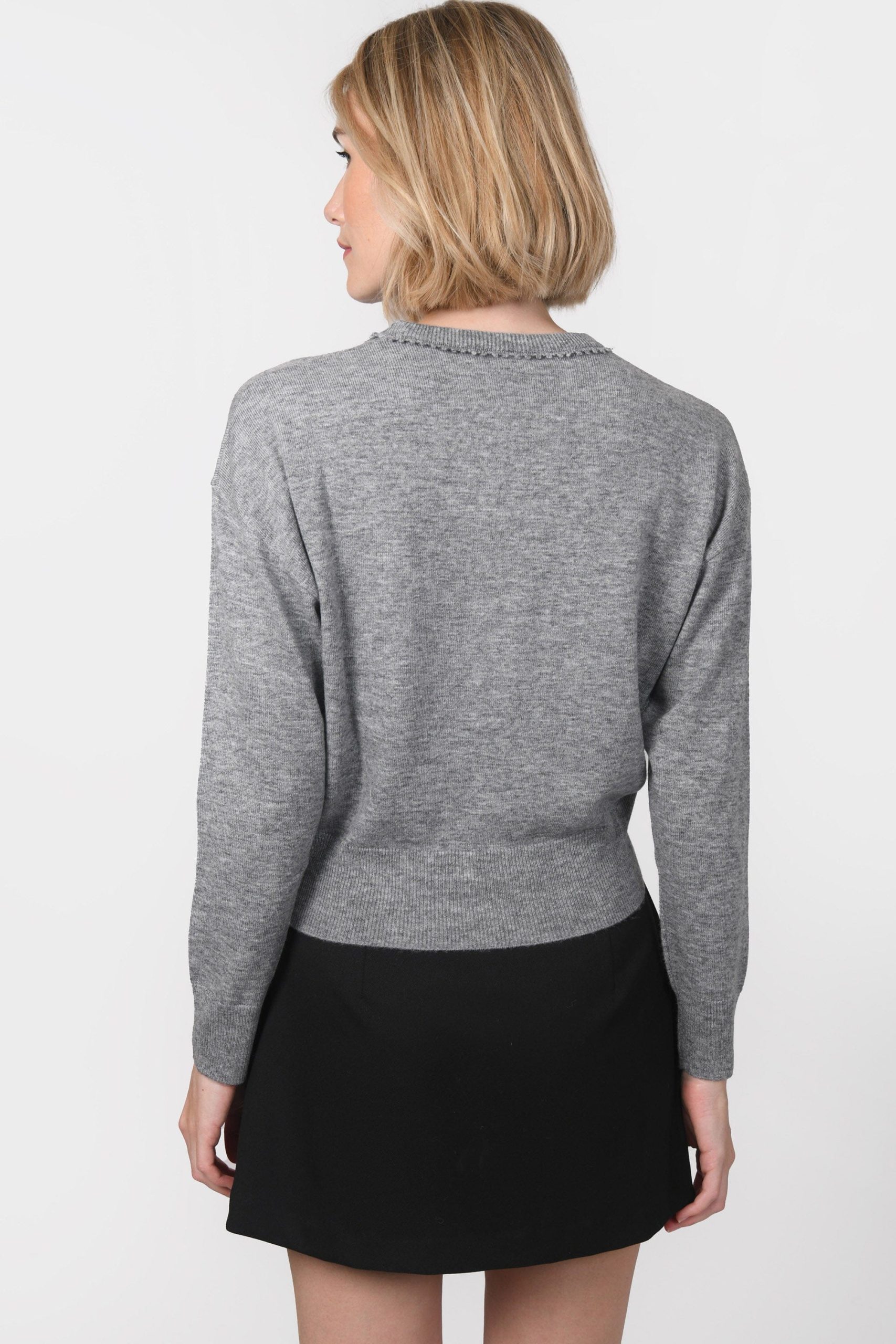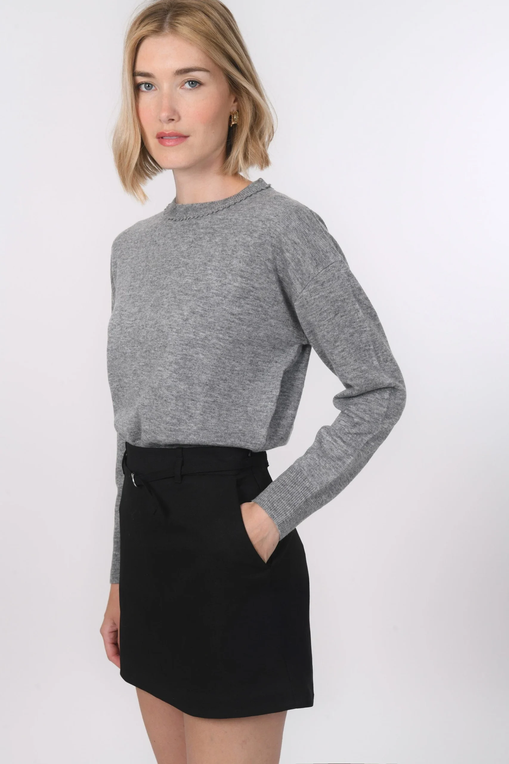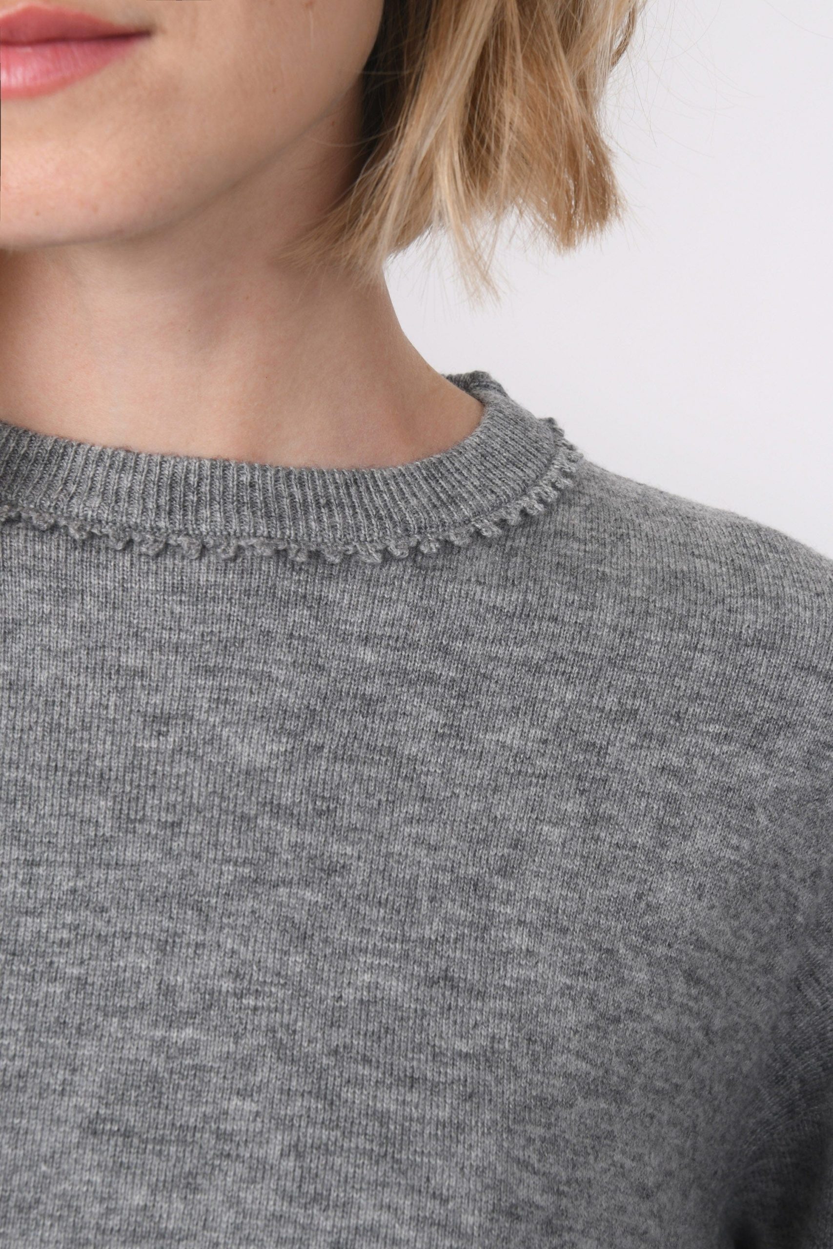 A décliner en version décontractée ou plus habillée, voici le pull BacotEn laine mélangée, maille fine et douceEncolure ronde bordée d’un galon fantaisie façon croquetEmmanchures descenduesLongueur 53cm en T0 Océane mesure 1m77 et porte une taille 0