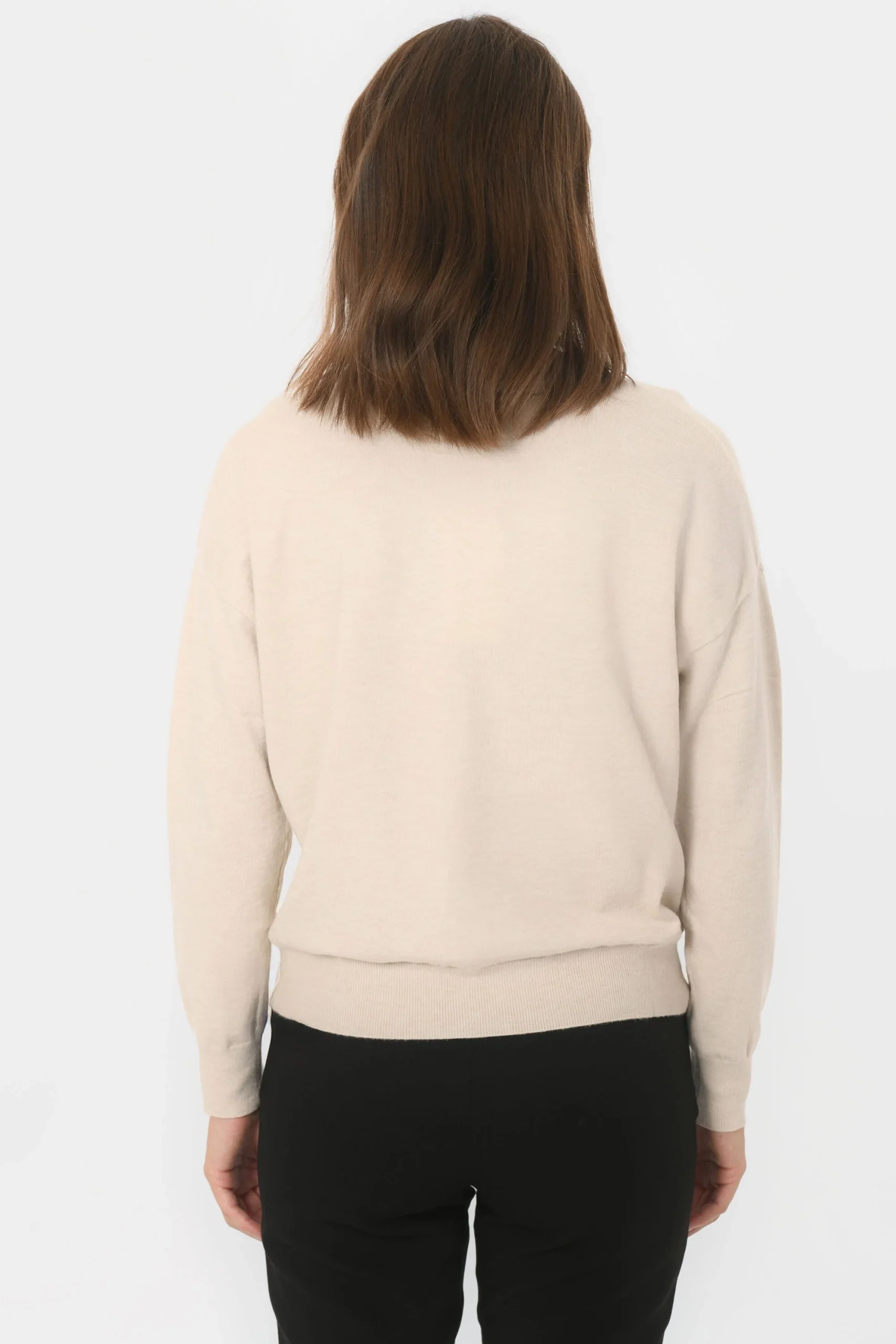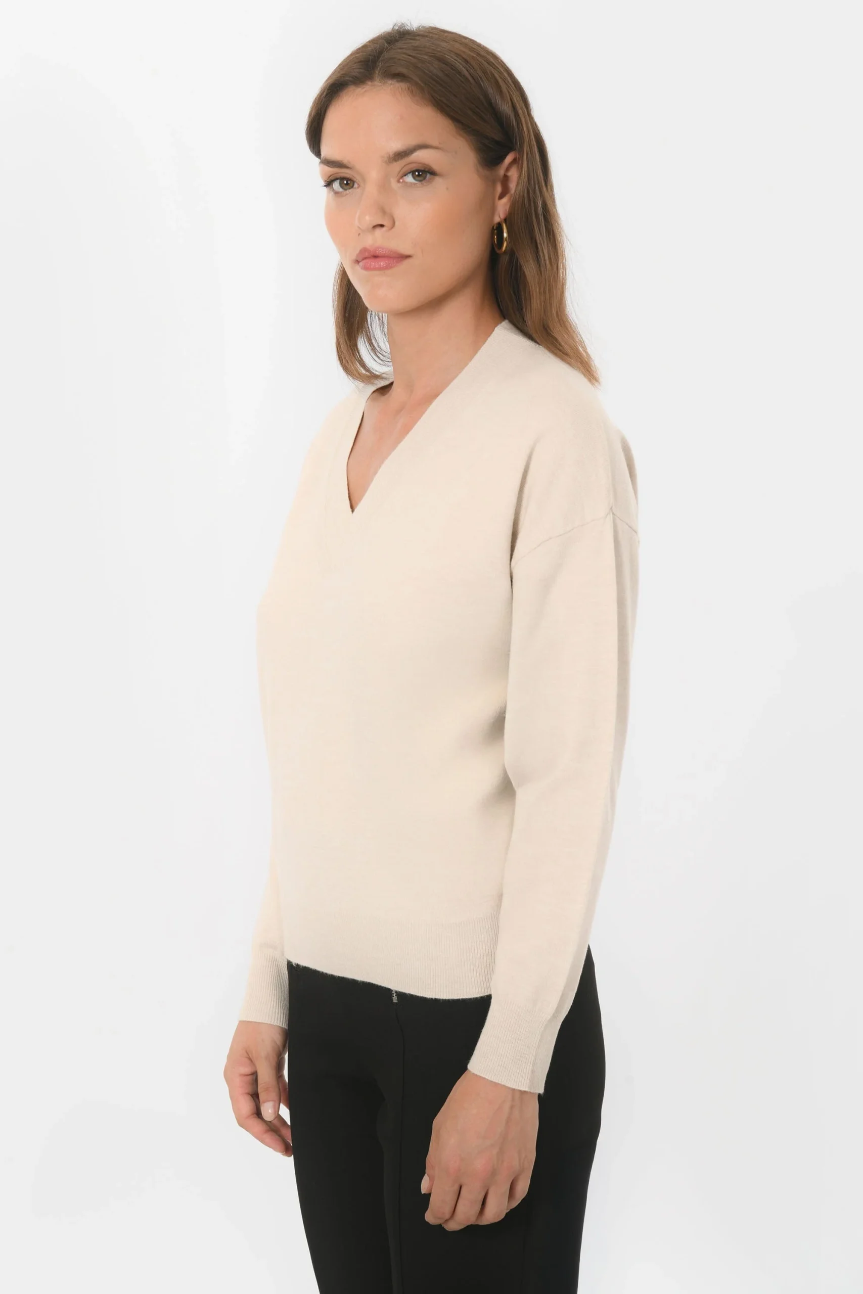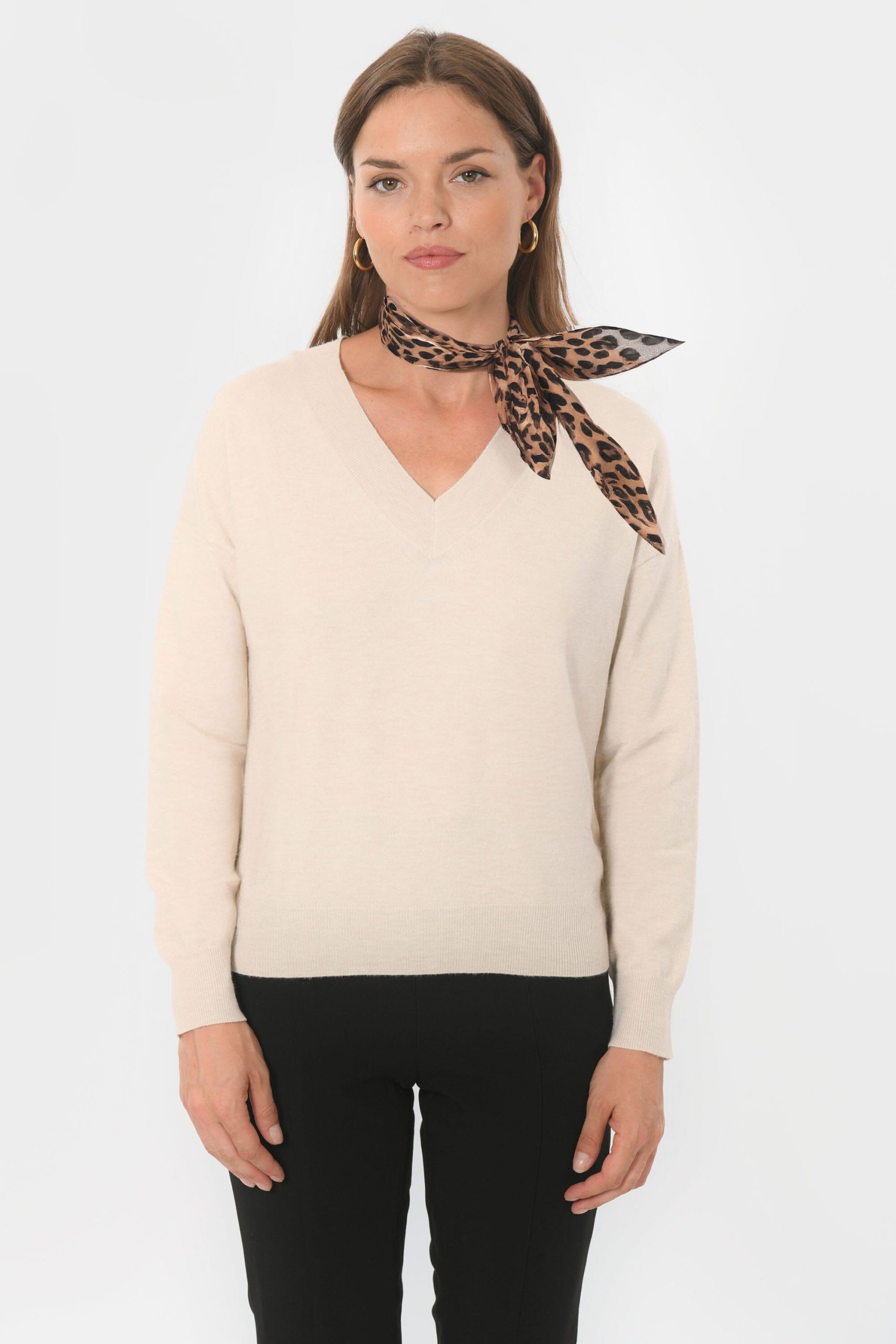 Belina, le petit pull au joli décolletéEn viscose mélangé, maille douce et extensibleEncolure VManches longues Coupe près du corpsLongueur 48cm en T0 Sasha mesure 1m75 et porte une taille 0