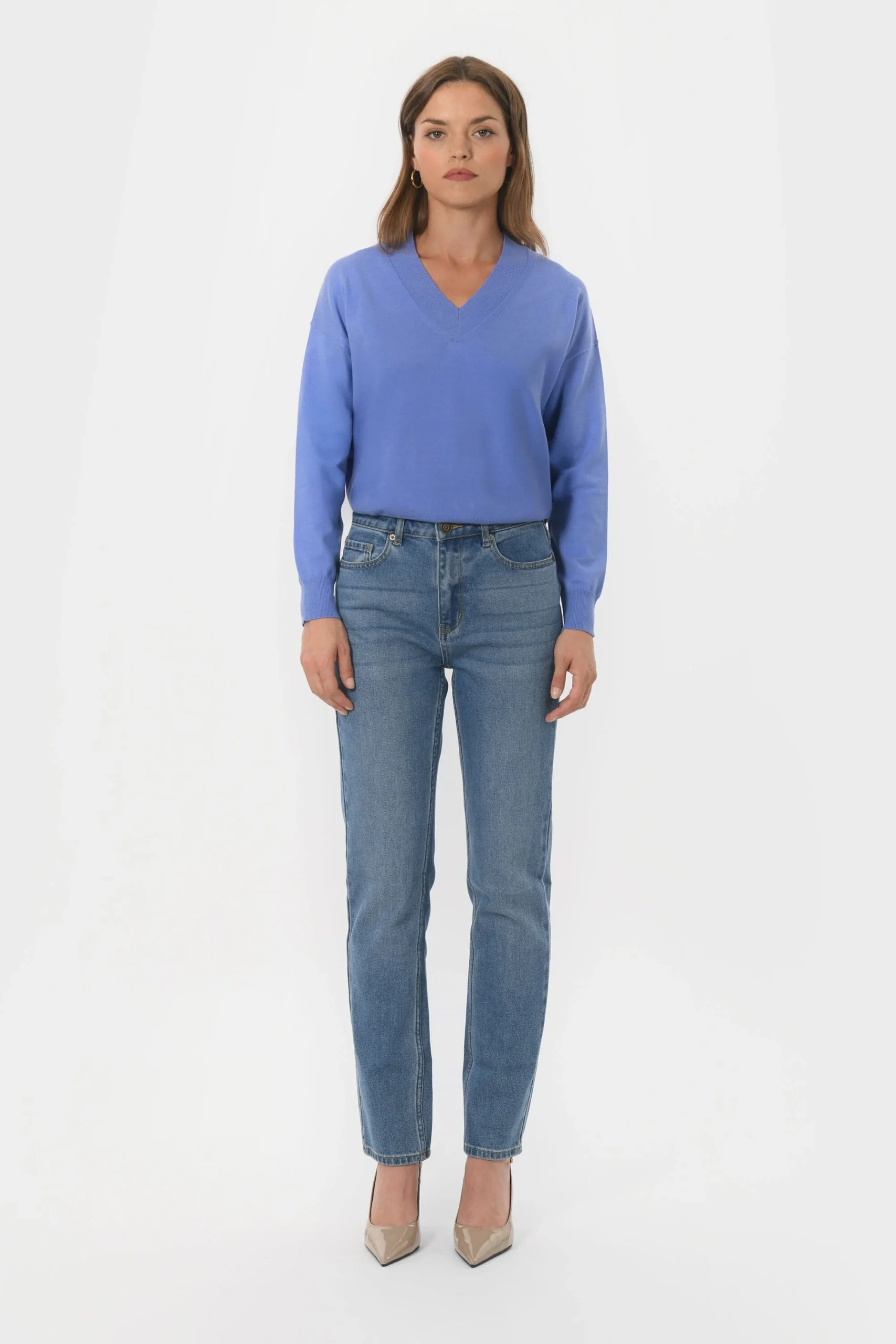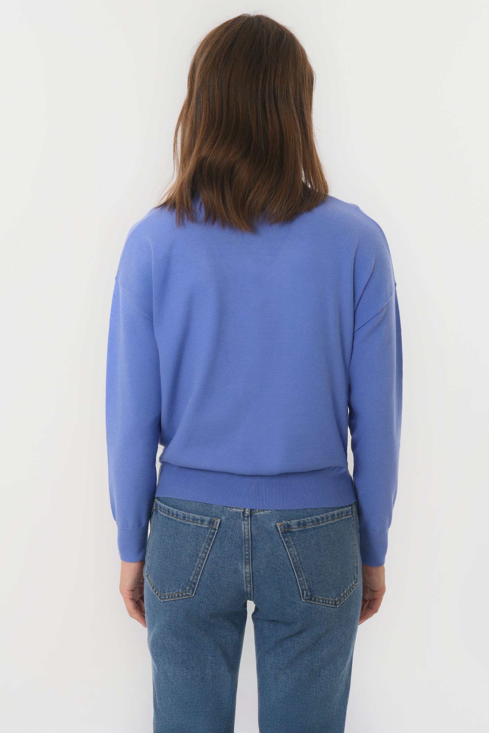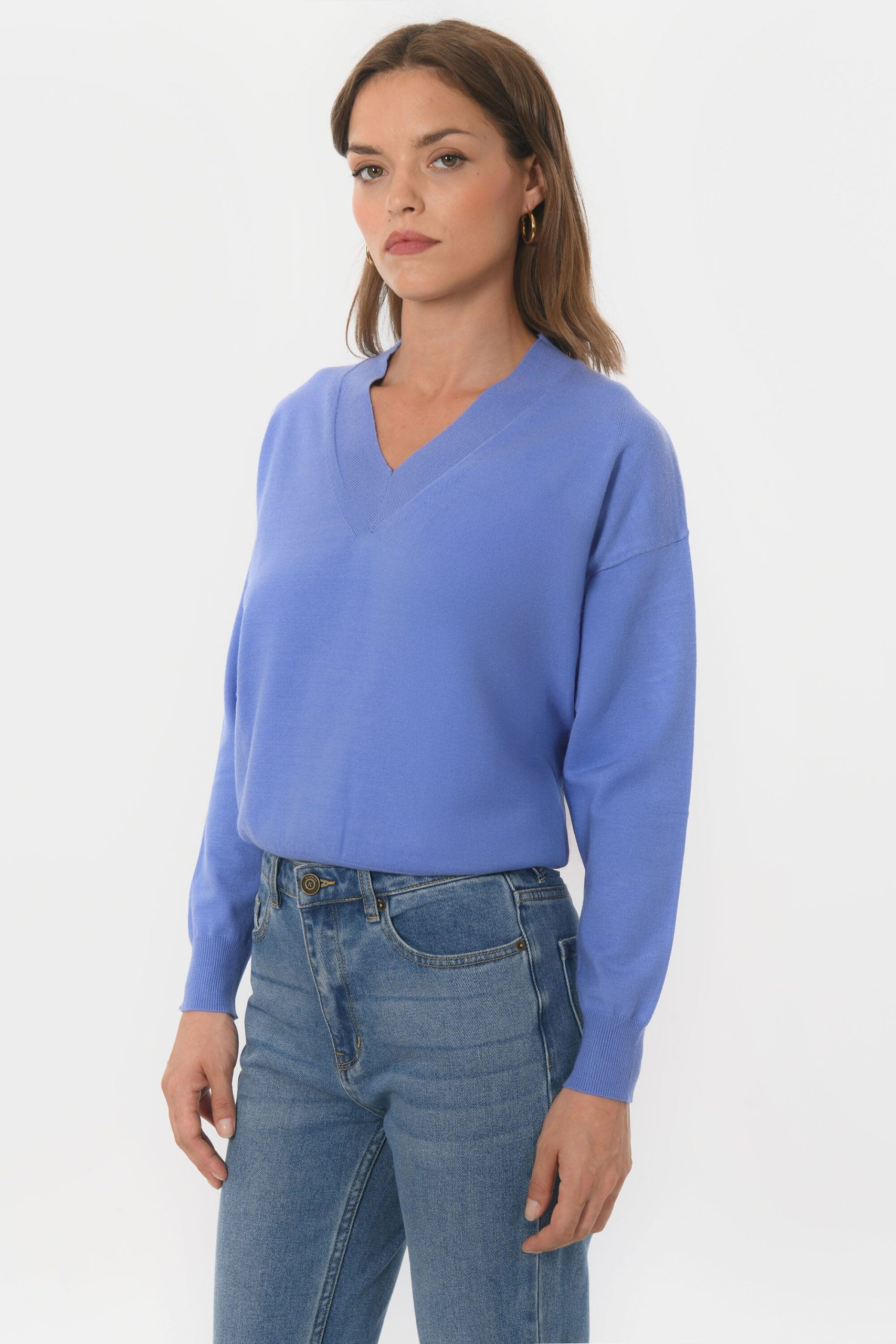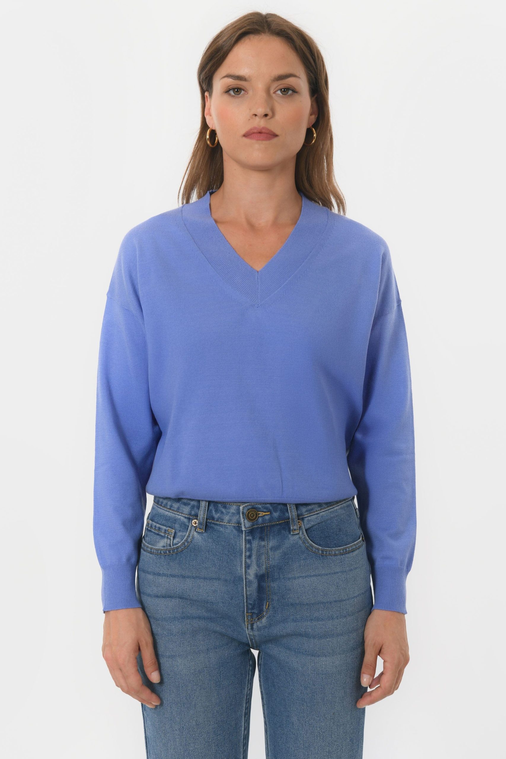 Belina, le petit pull au joli décolletéEn viscose mélangé, maille douce et extensibleEncolure VManches longues Coupe près du corpsLongueur 48cm en T0 Sasha mesure 1m75 et porte une taille 0