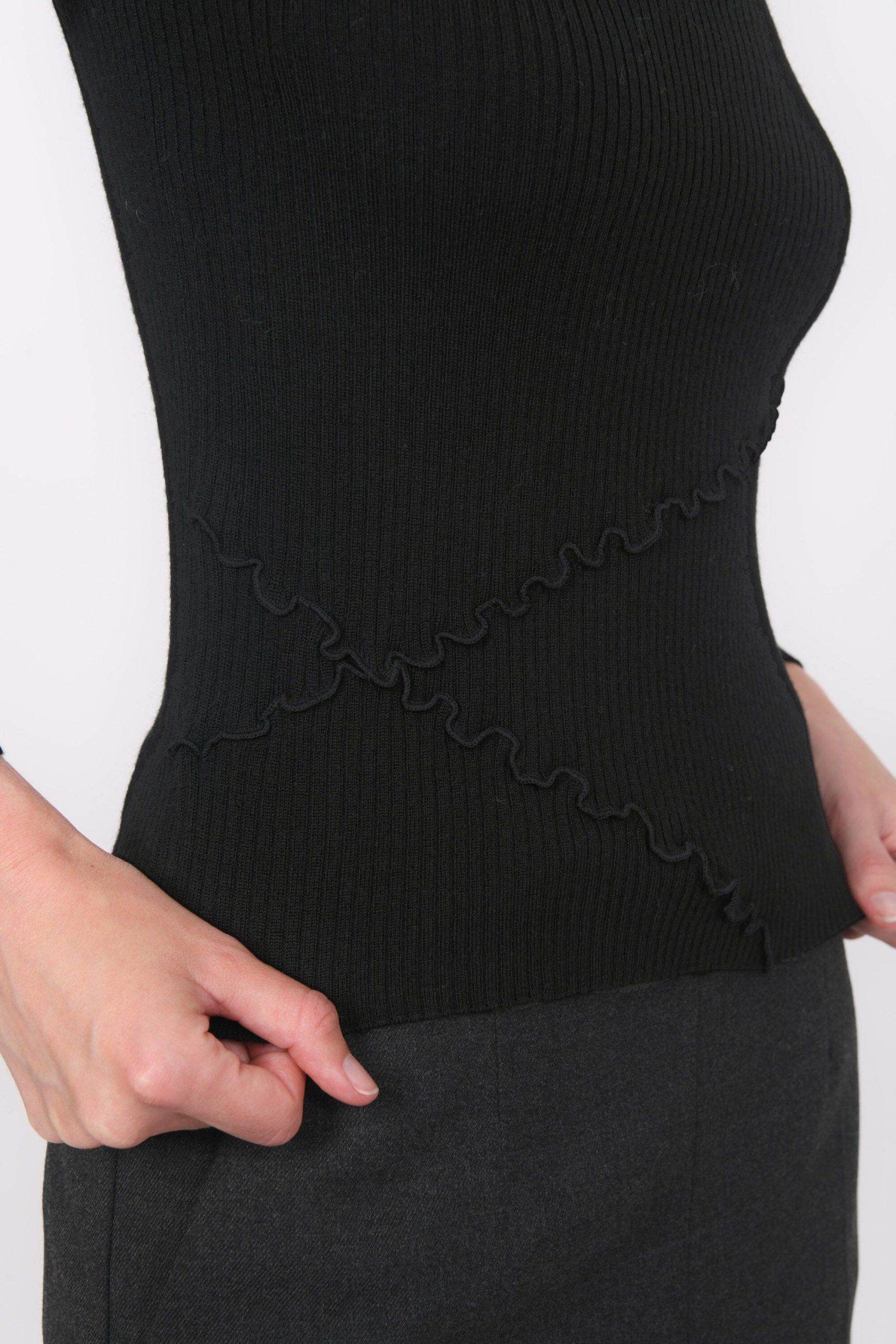 Tricotage fantaisie effet volants structurant la silhouette