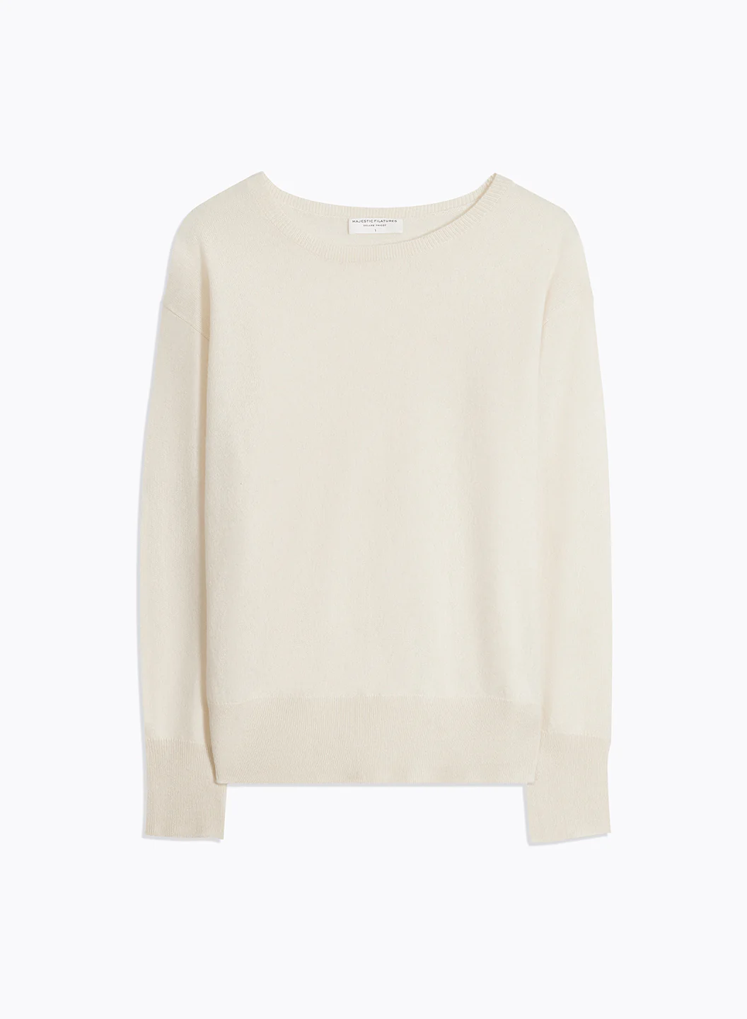 Pull Blanc Col Rond Manches Longues en Cachemire