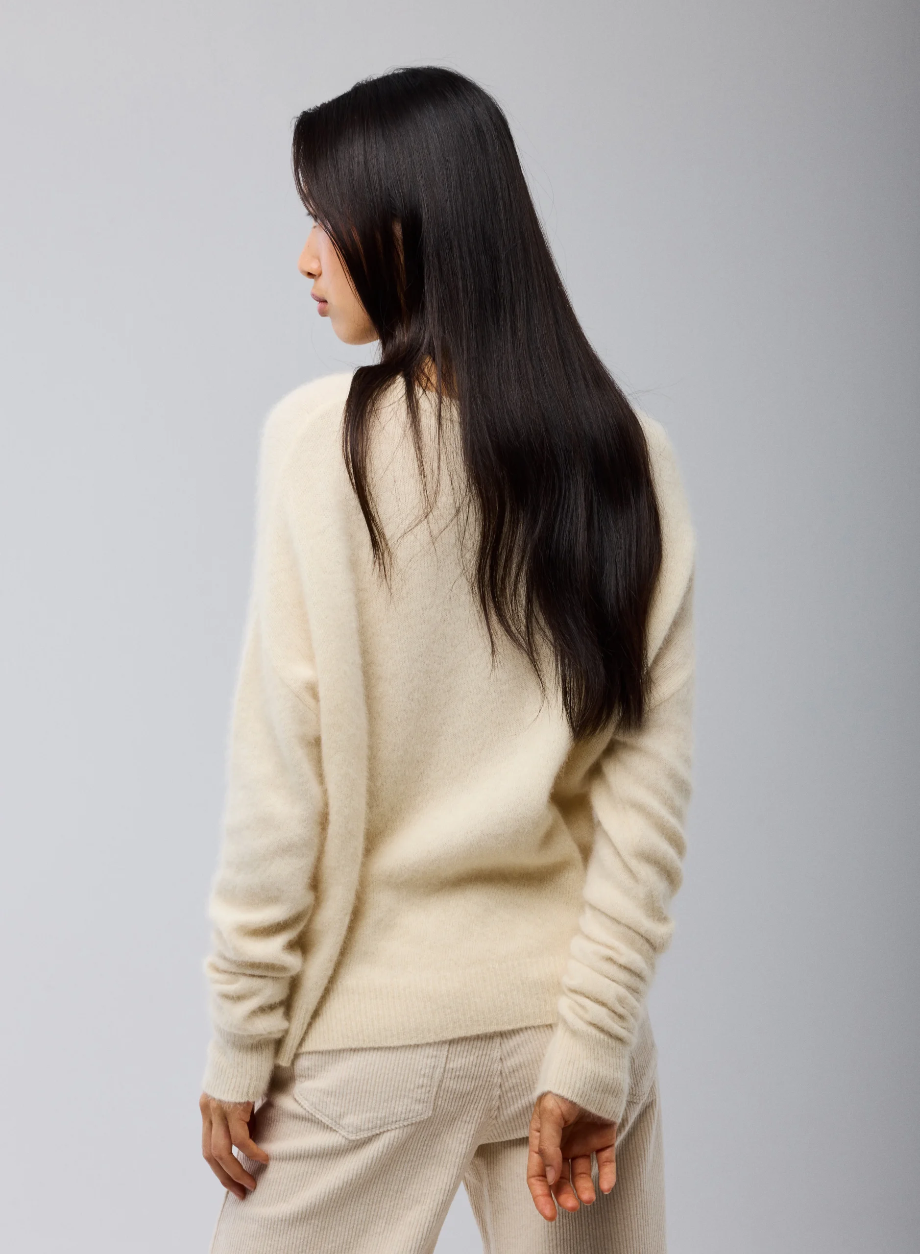 Pull Blanc Col Rond Manches Longues en Raccoon / Polyamide, tricoté dans une maille légère et moelleuse qui procure une chaleur naturelle tout en restant ultra confortable. Une pièce idéale à porter seule ou superposée tout au long de la saison.