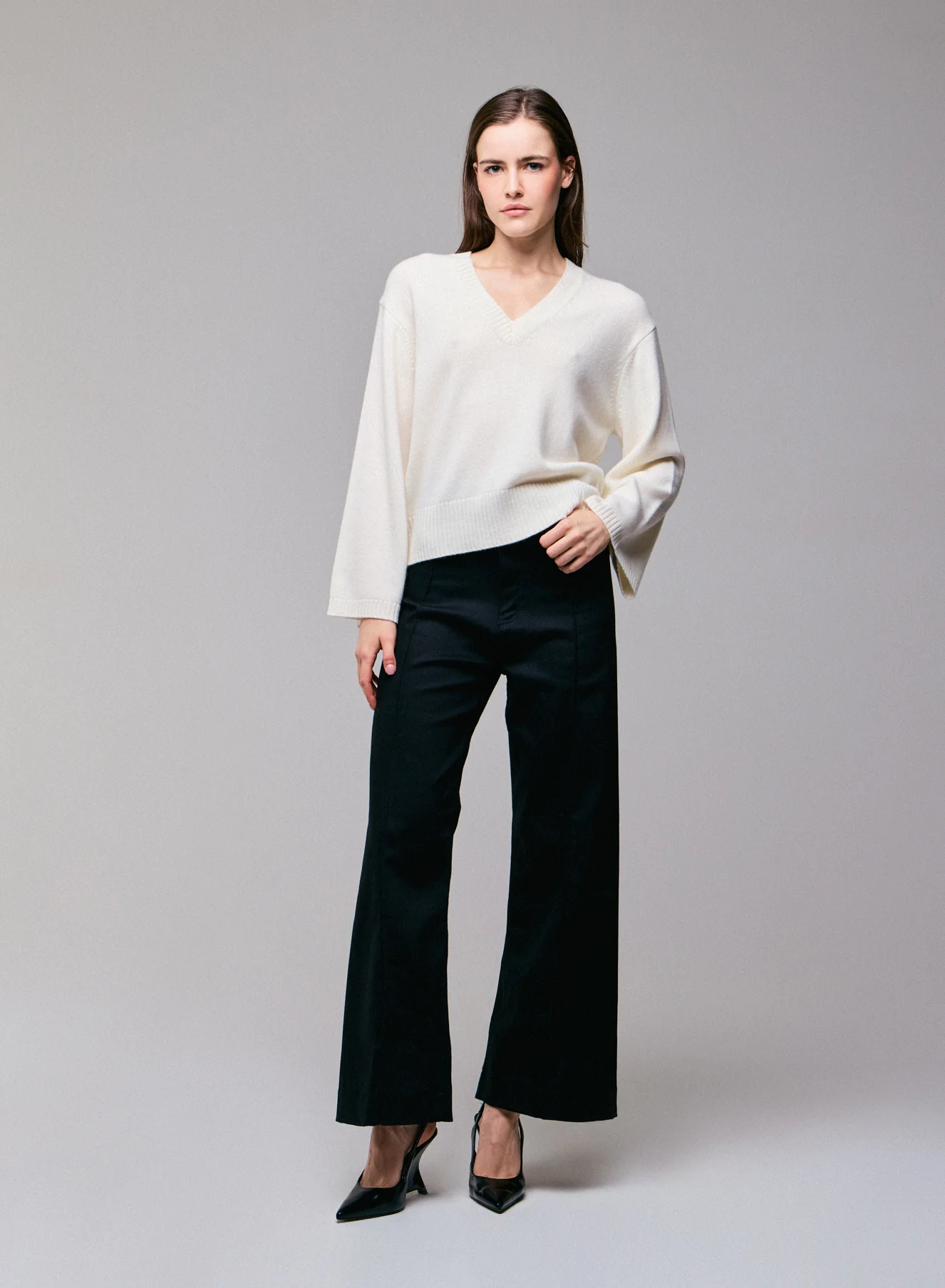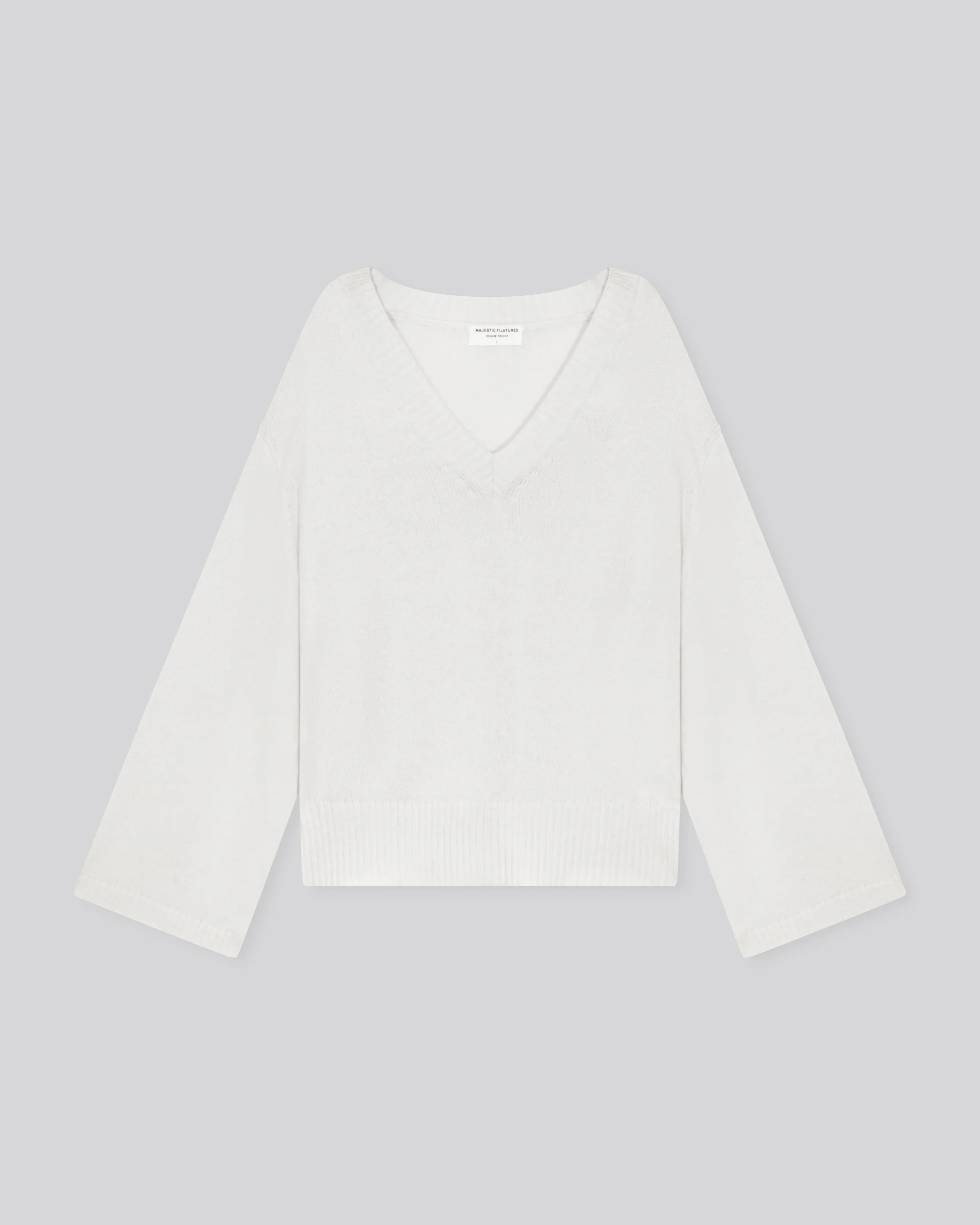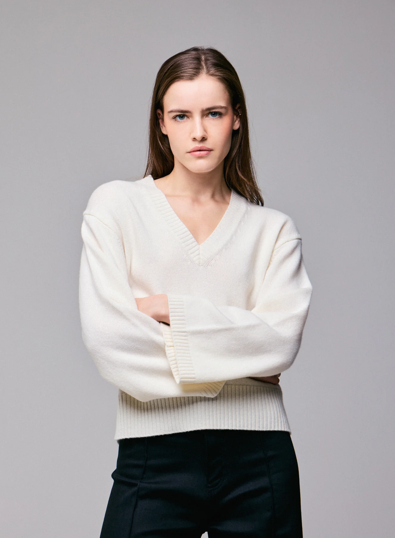 Pull Blanc Col V Manches Longues en Laine merinos est confectionné dans une matière naturelle, douce et confortable, idéale pour un usage quotidien.