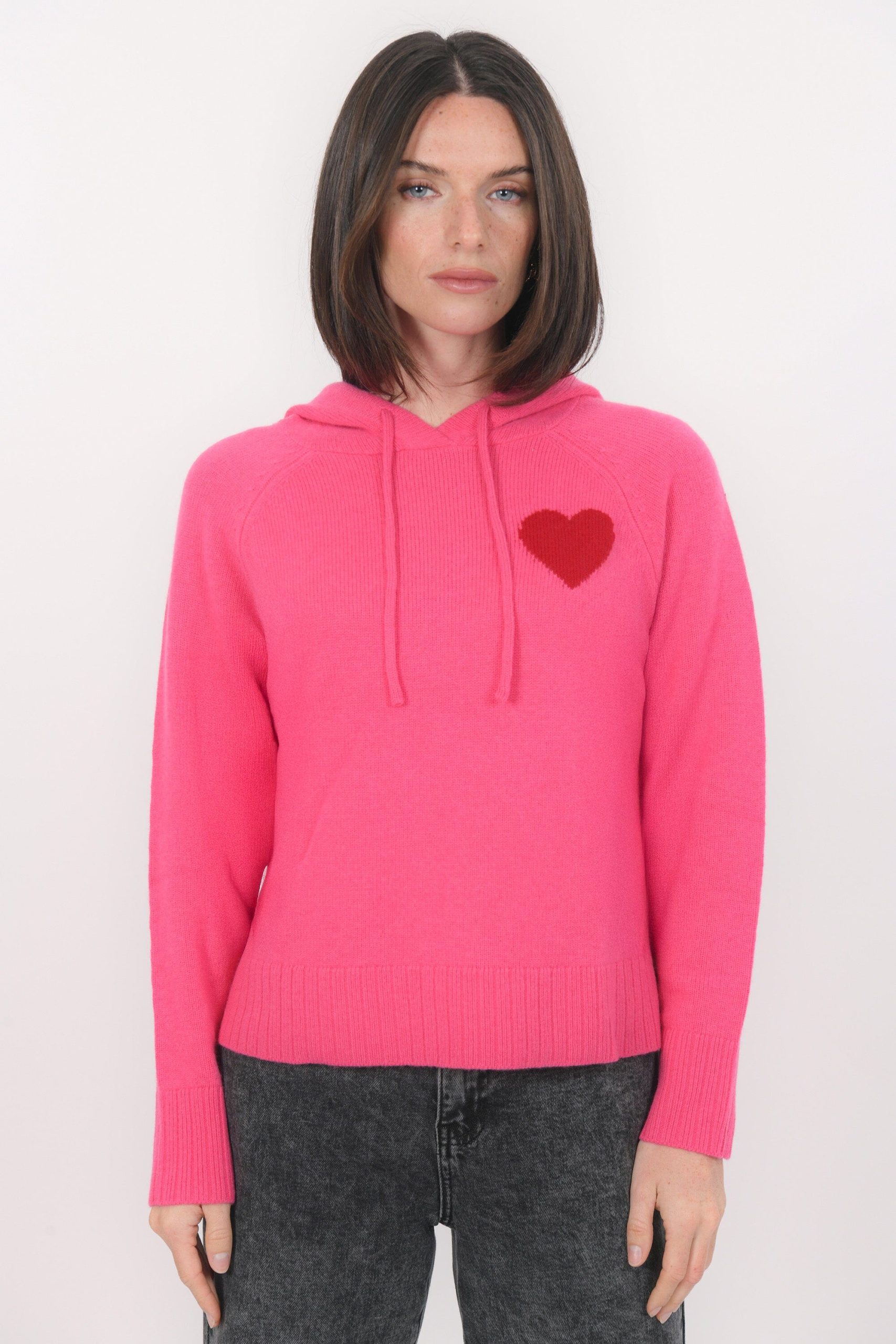 Bart, le pull à capuche ultra douxMaille laine et cachemireCapuche avec liens coulissantsOn adore le cœur contrasté en intarsia sur la poitrineEmmanchures raglanBord côte sur les poignets et le basLongueur 58cm en T0