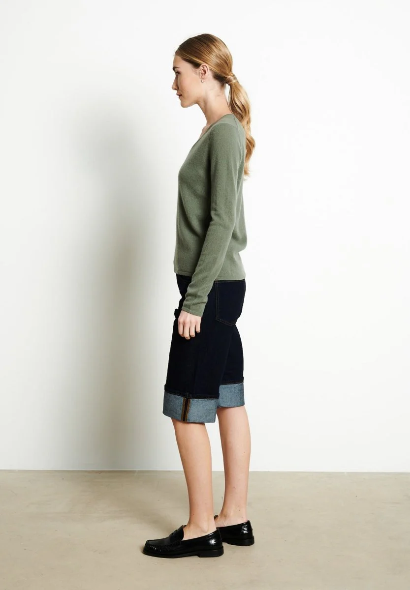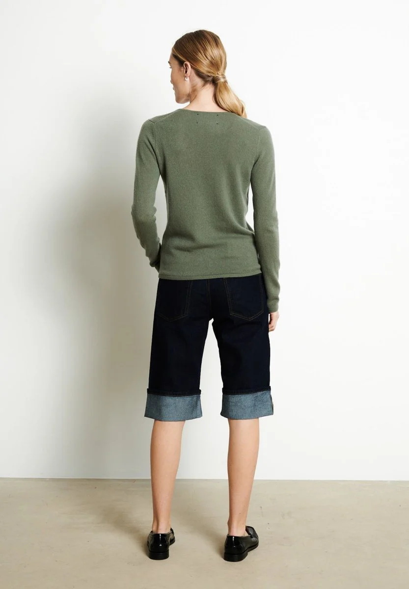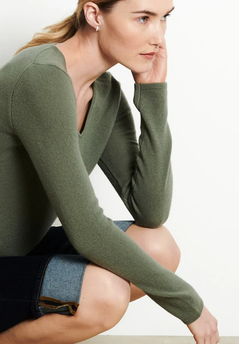 Pull col V femme en cachemire kaki militaire – LILLY 2B