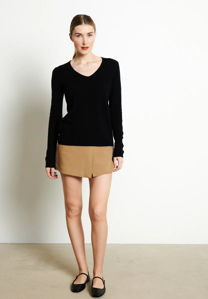 Pull col V femme en cachemire noir – LILLY 2B