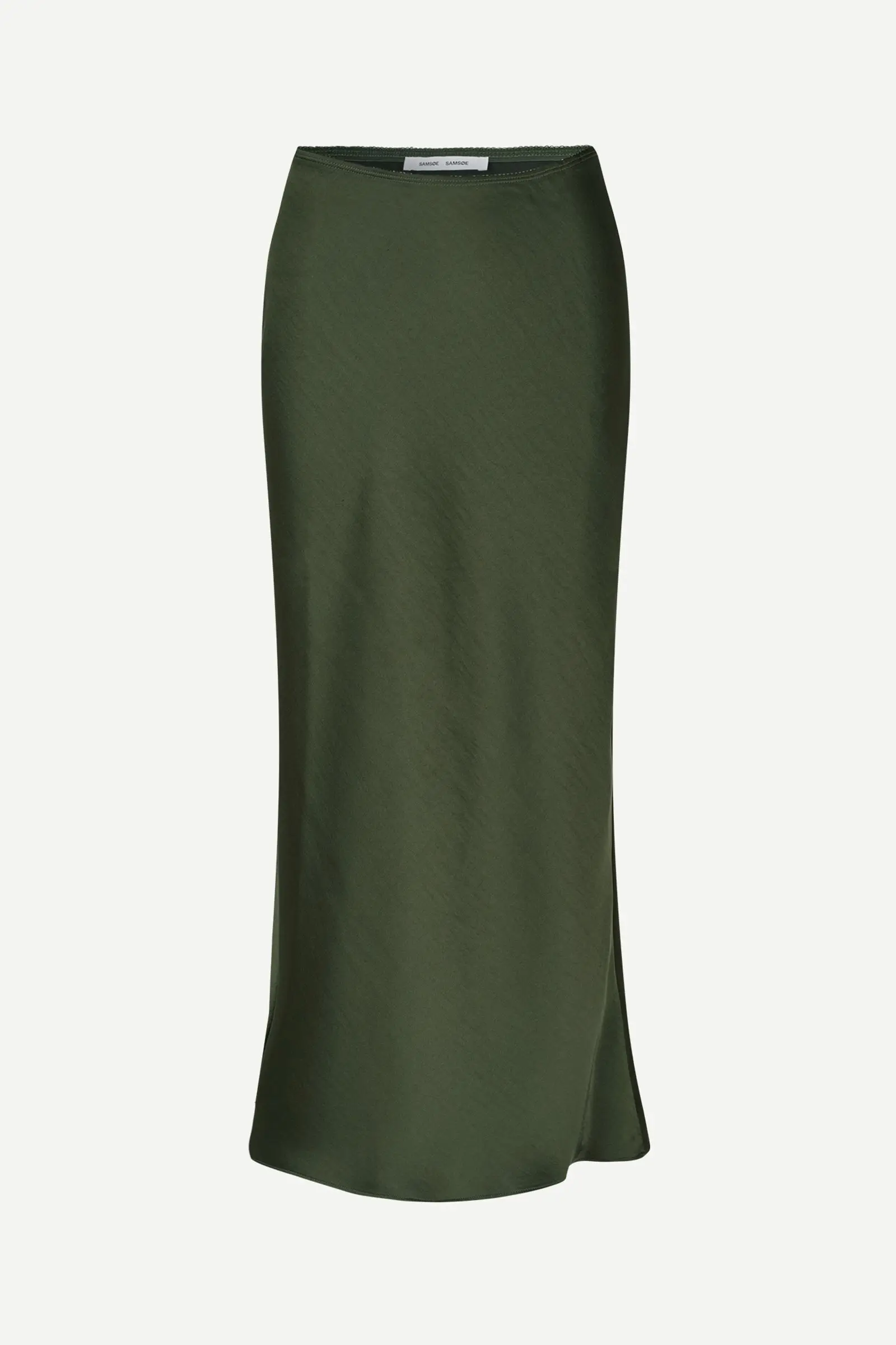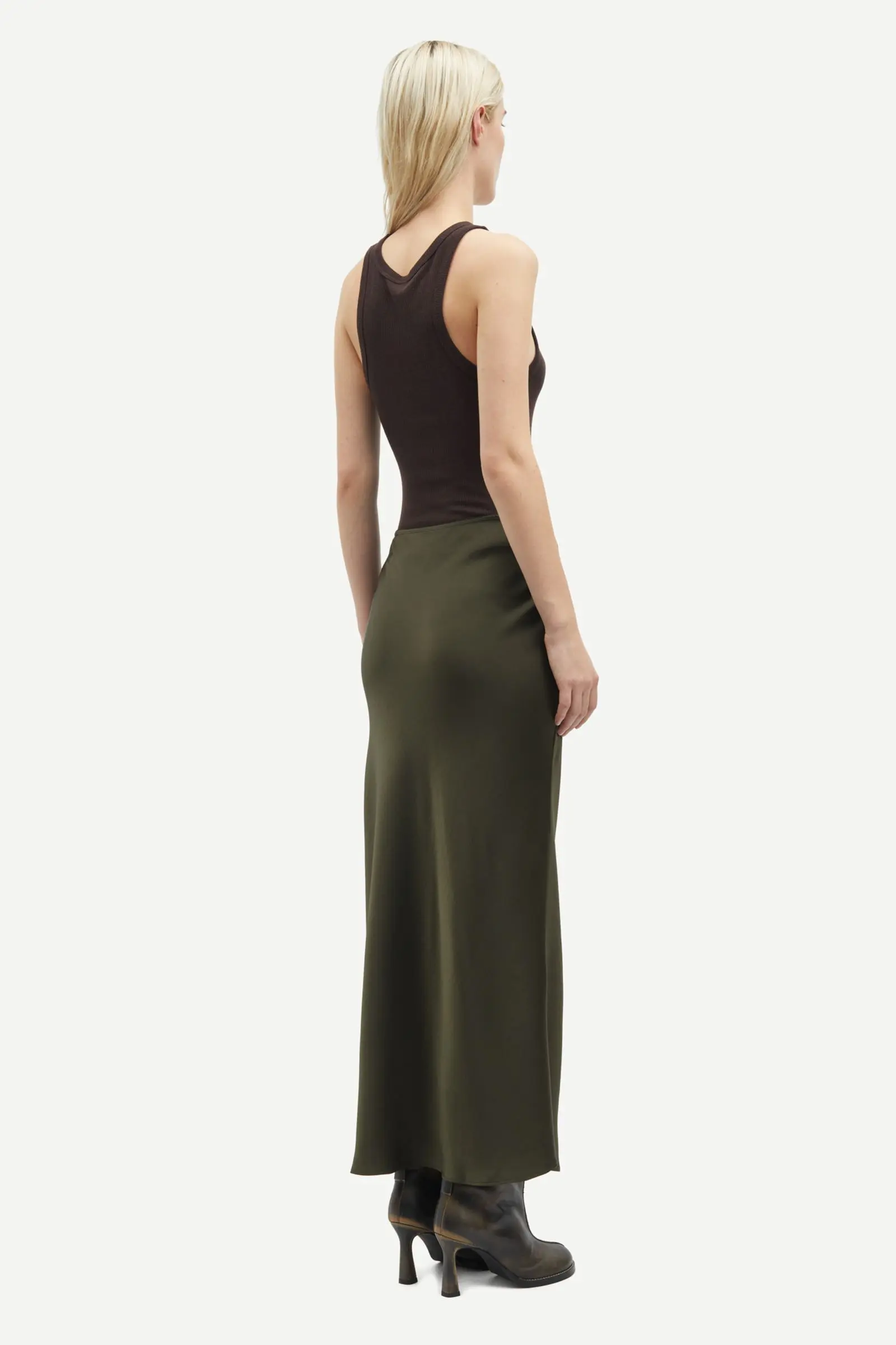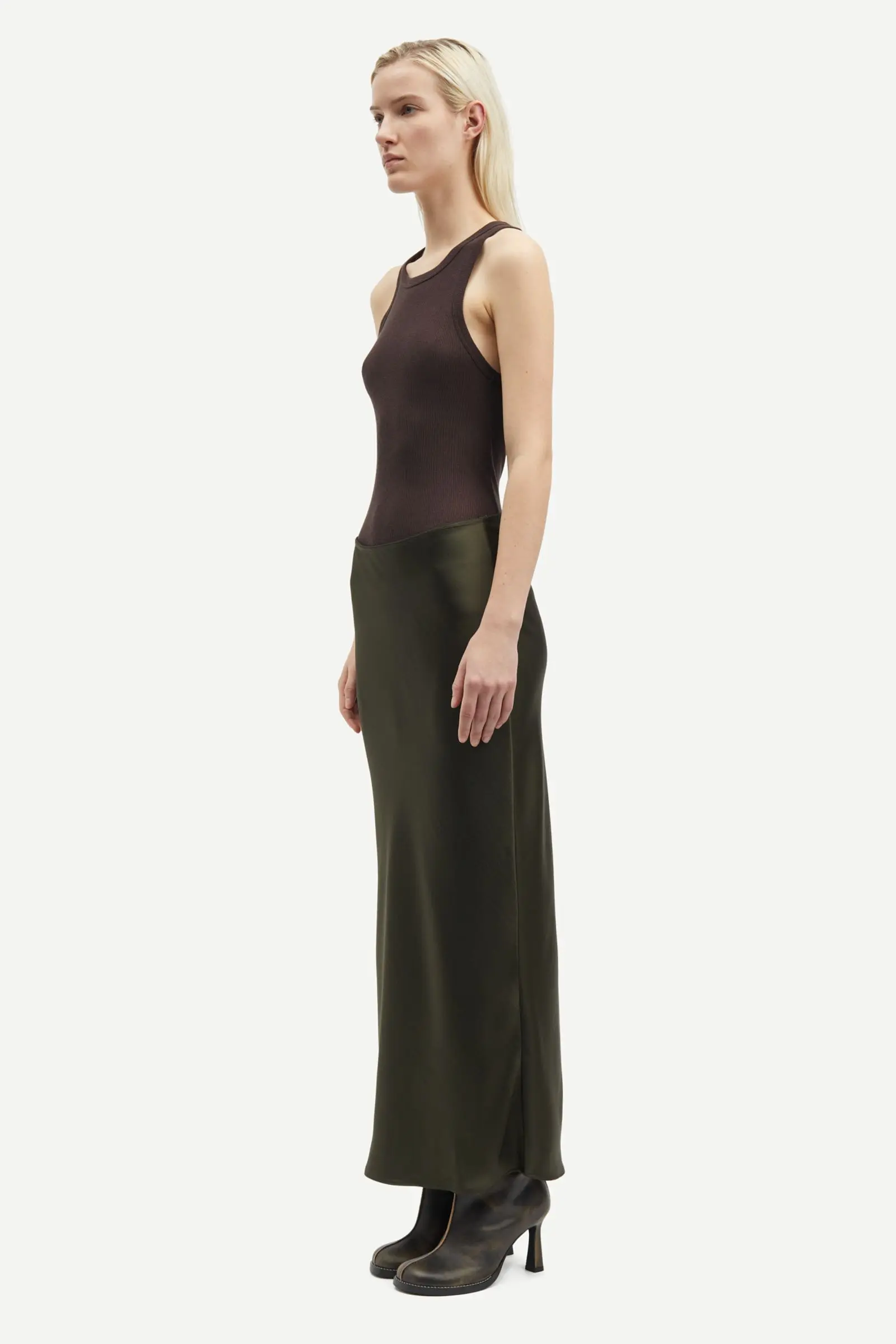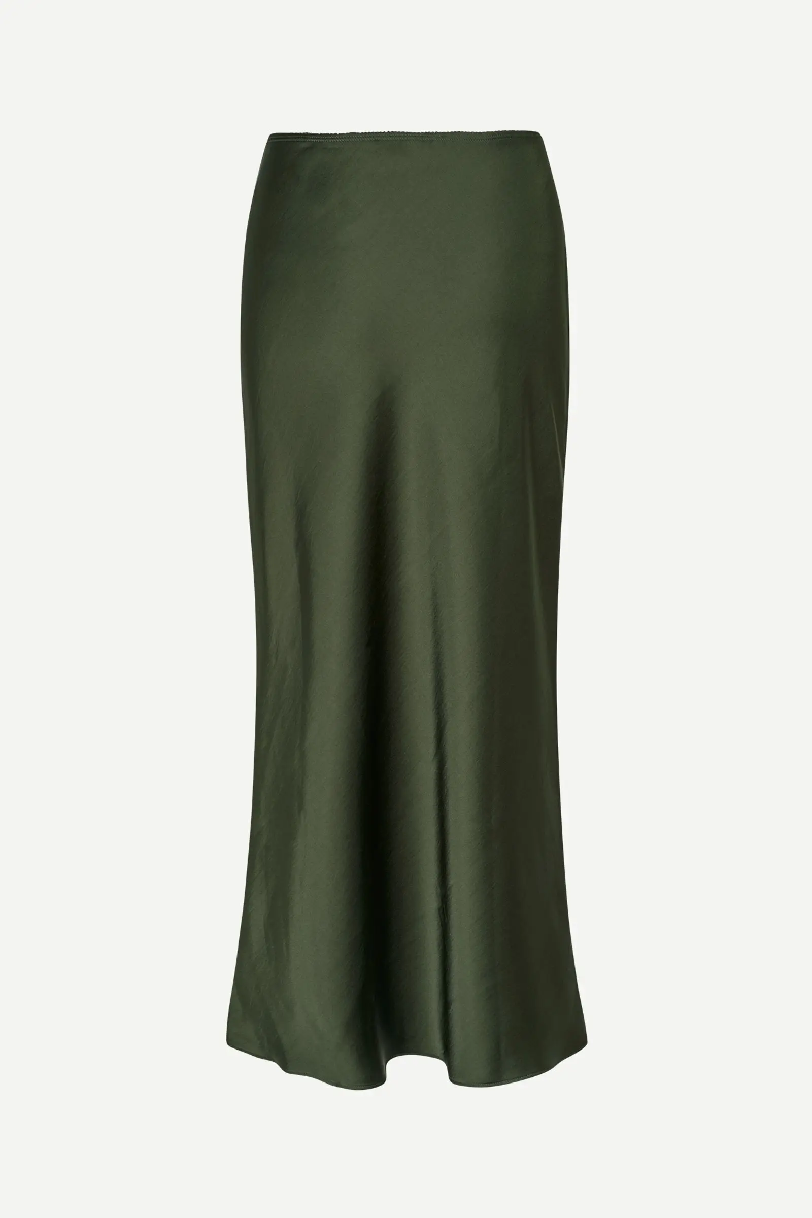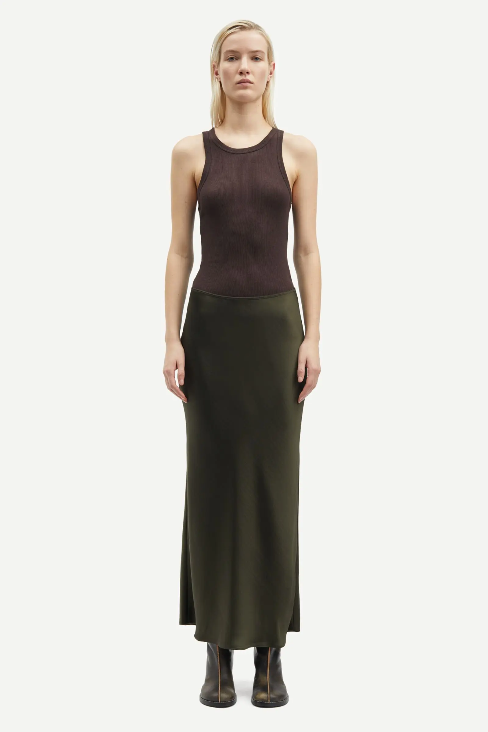 Jupe longue en satin, coupe ajustée. Taille élastiquée. Matière principale en polyester 100 % recyclé. Ce produit est certifié GRS. Chaque étape de la chaîne d’approvisionnement a répondu à des exigences sociales, environnementales et chimiques strictes.