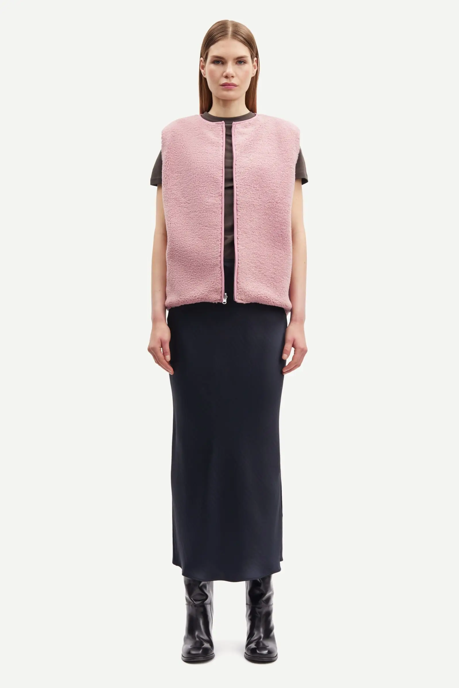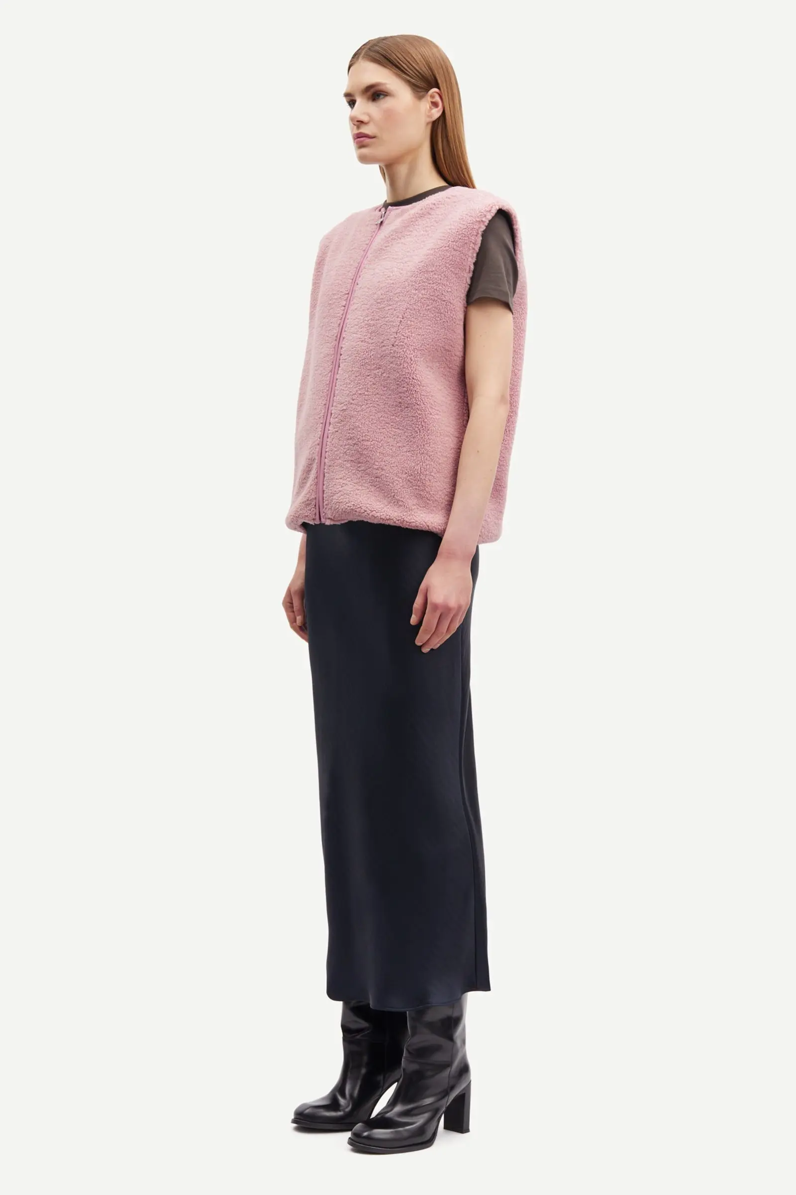 Jupe longue en satin, coupe ajustée. Taille élastiquée. Matière principale en polyester 100 % recyclé. Ce produit est certifié GRS. Chaque étape de la chaîne d’approvisionnement a répondu à des exigences sociales, environnementales et chimiques strictes.