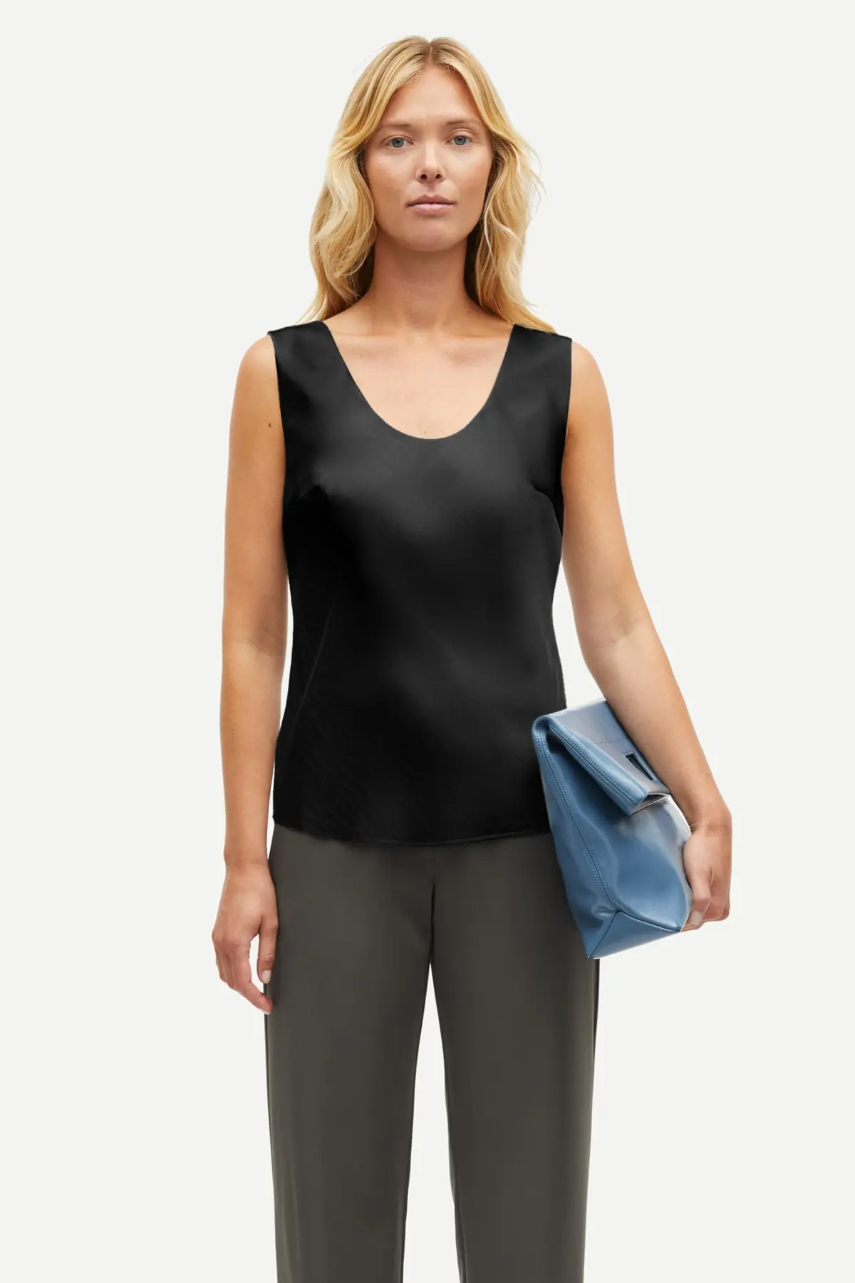 Haut en satin, coupe classique. Col et dos arrondis. •Matière : 100 % polyester recyclé.