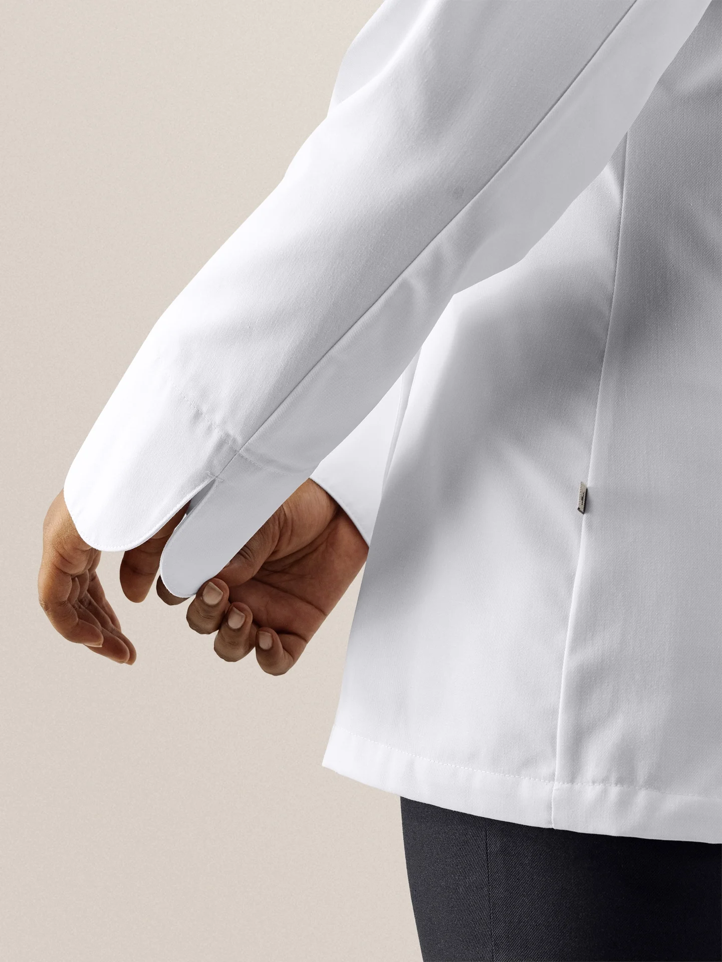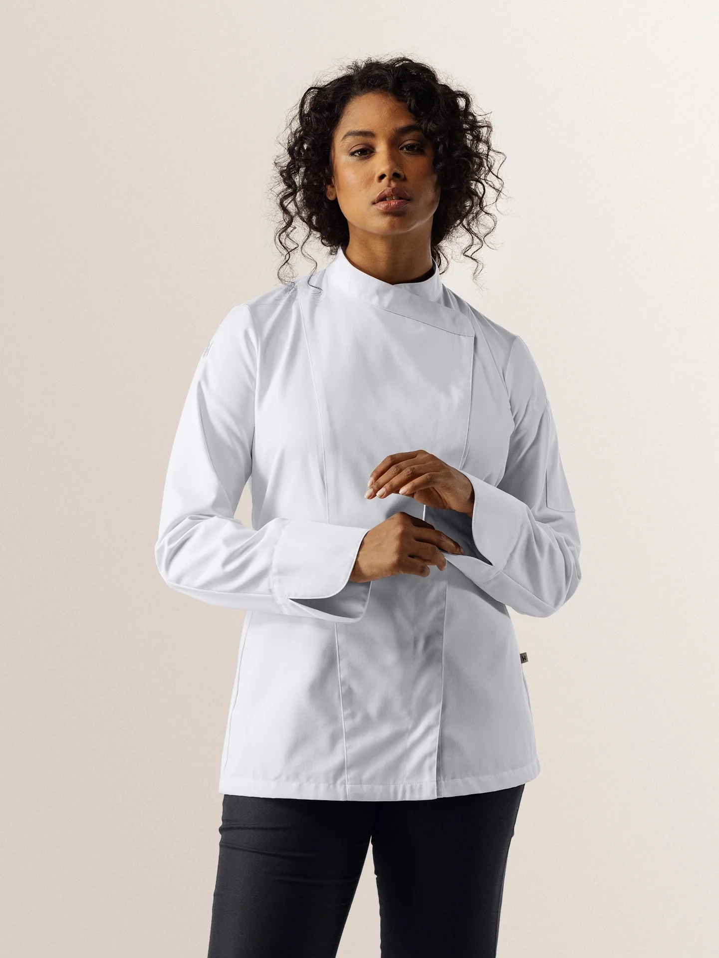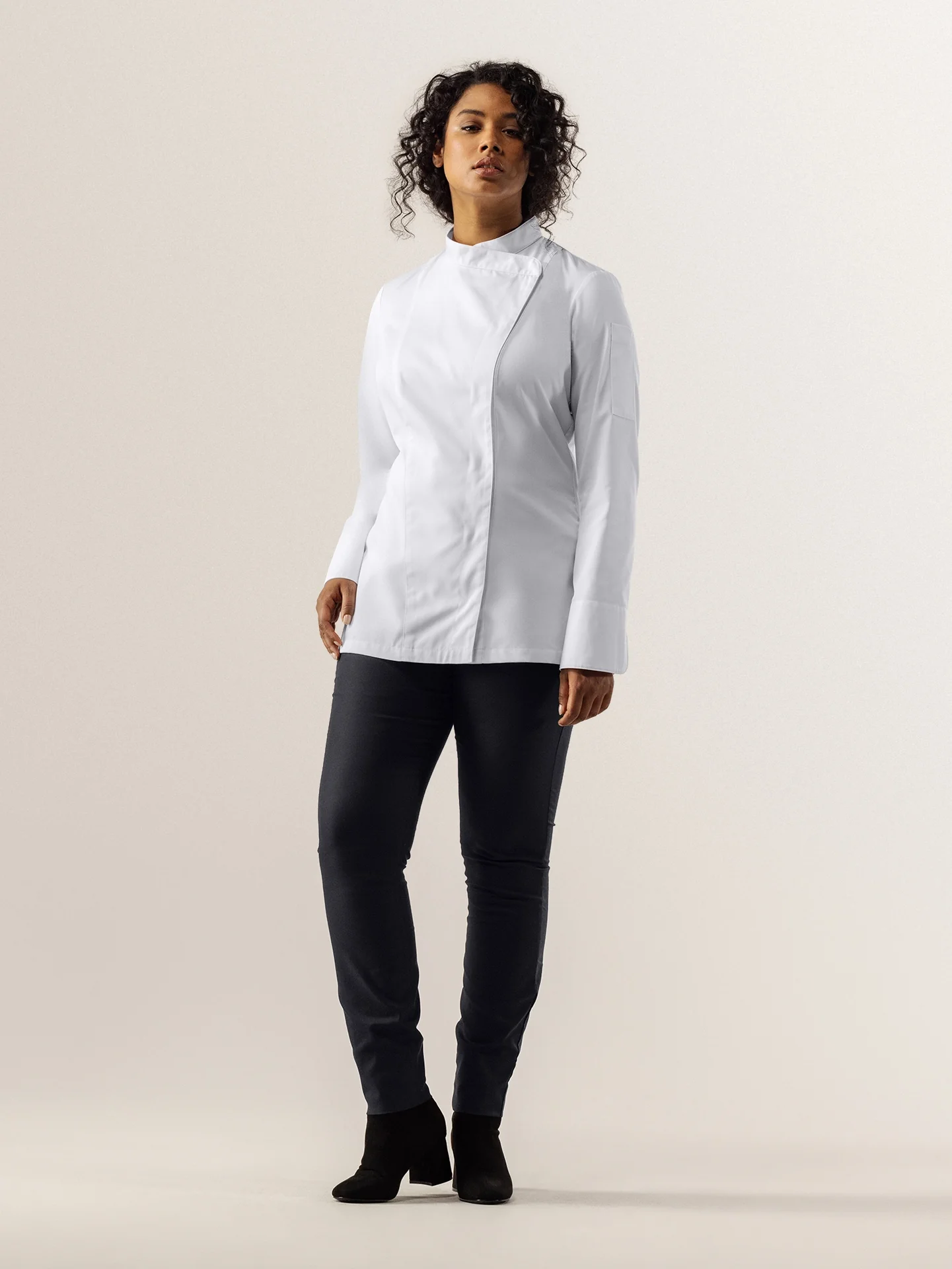 Chef Jacket Arlette offers a simplified design based on a classic chef jacket. Specially tailored for line chefs, this chef jacket is crafted from our most wear-resistant fabric, designed to withstand the wear and tear of daily kitchen use. Available in larger quantities and suitable for industrial laundry cycles. This is a simplified version of our Chef Jacket Lynn, featuring a crossover closure and a s