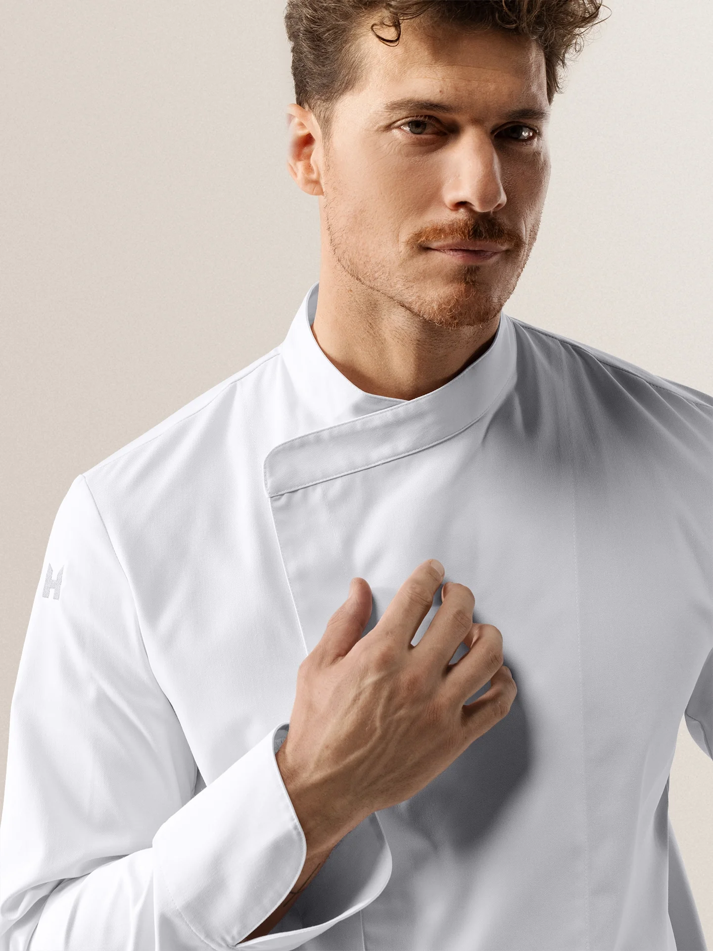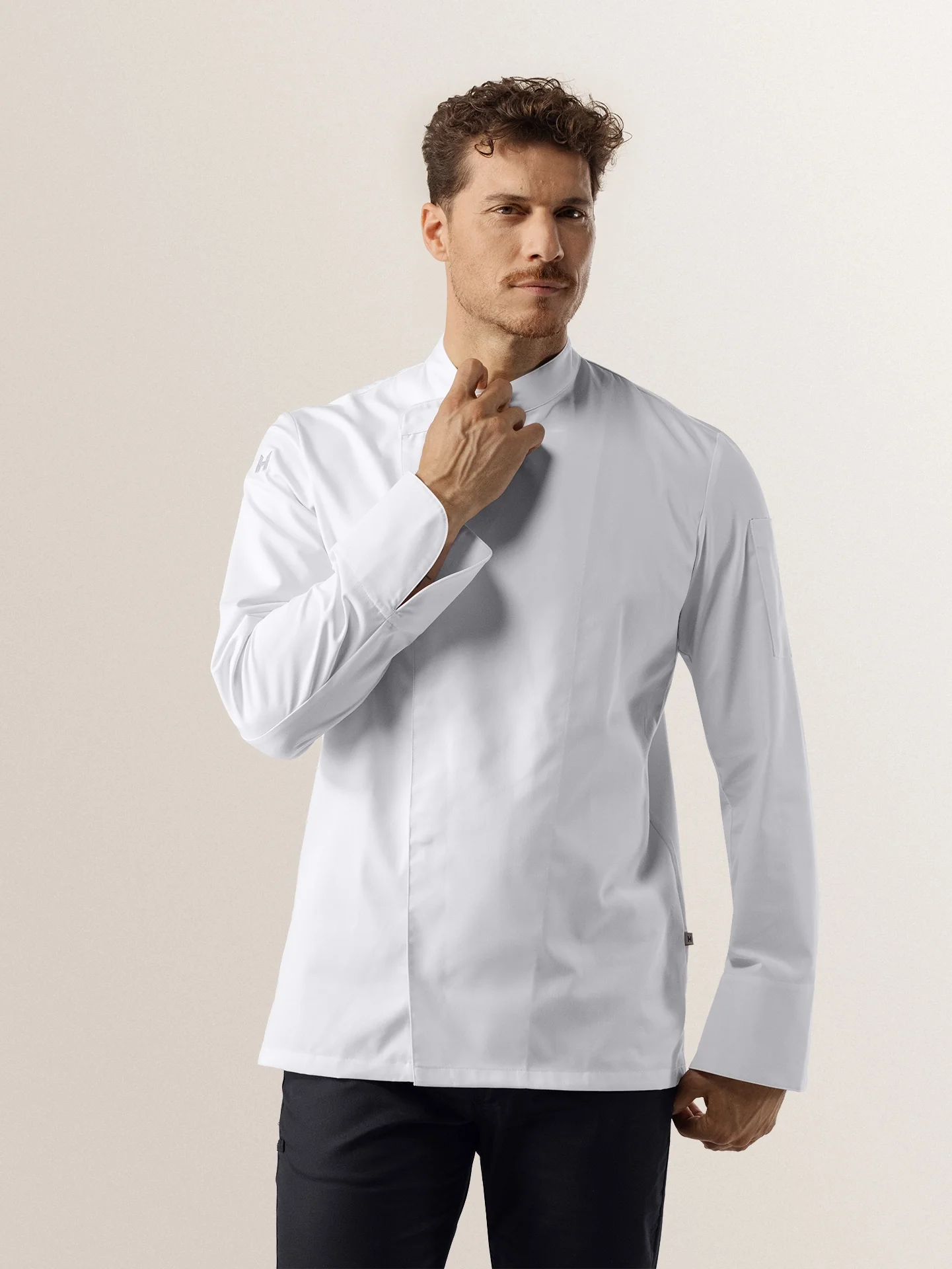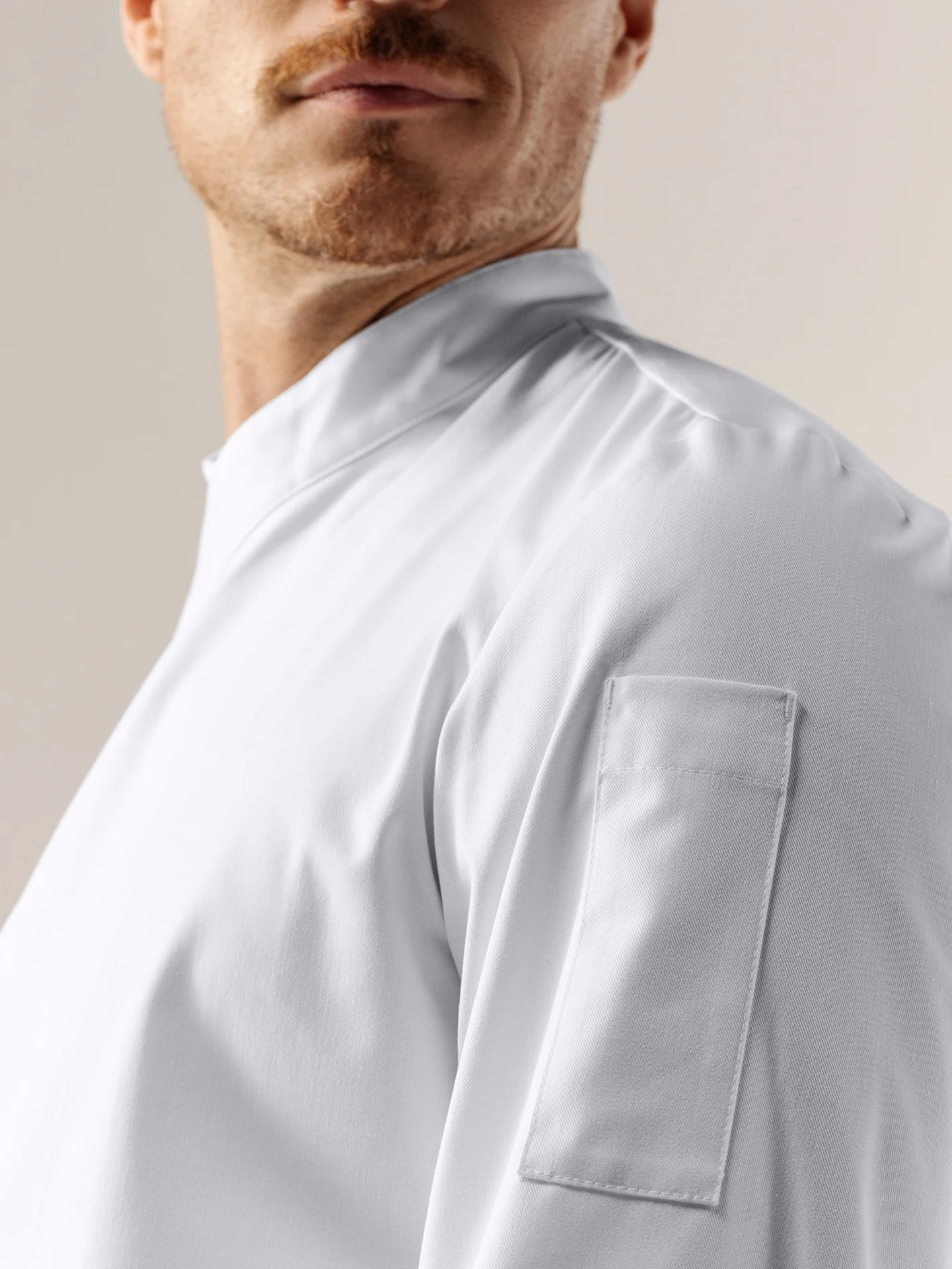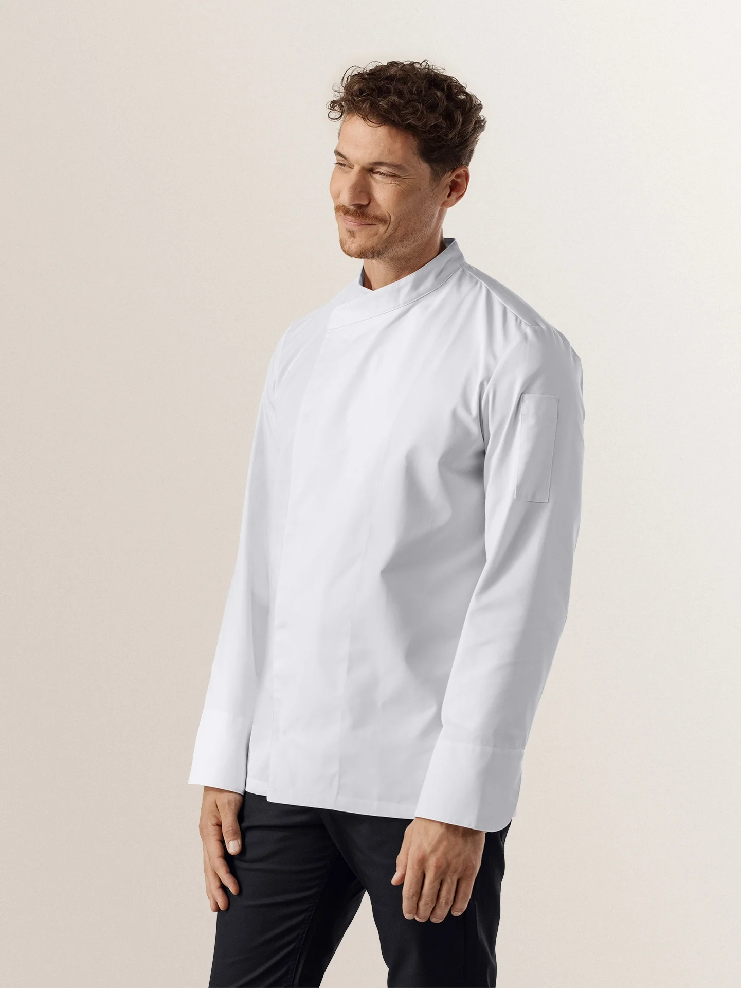 Chef Jacket Arnoux offers a simplified design based on a classic chef jacket. Specially tailored for line chefs, this chef jacket is crafted from our most wear-resistant fabric, designed to withstand the wear and tear of daily kitchen use. Available in larger quantities and suitable for industrial laundry cycles. This is a simplified version of our Chef Jacket Dave, featuring a crossover closure and a stitched pen pocket.