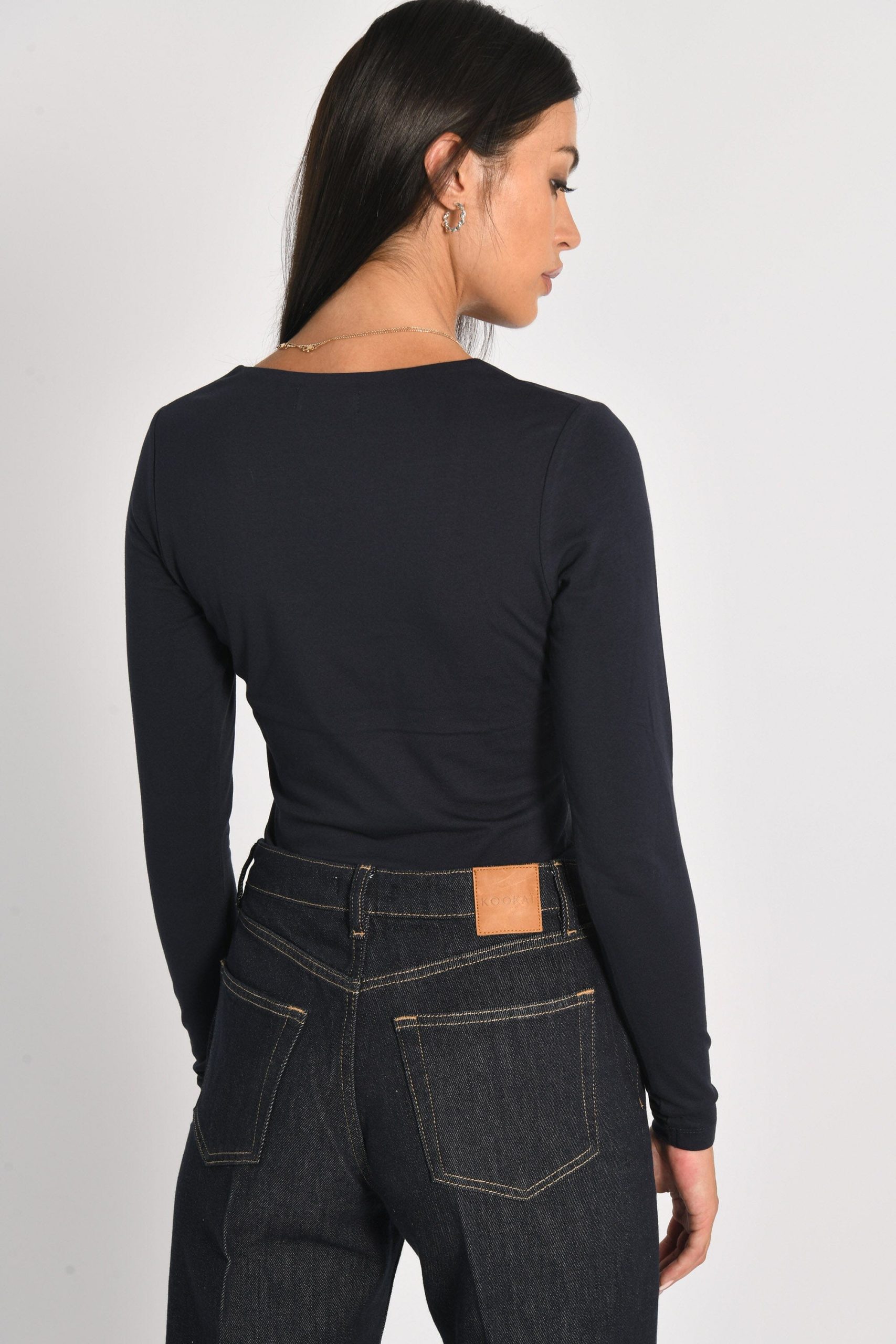 Clémentine, le top qui souligne la silhouette En coton Spandex, matière extensible qui s’ajuste à votre corps Encolure carrée structurée Manches longues Coupe près du corps Longueur 55cm en T0