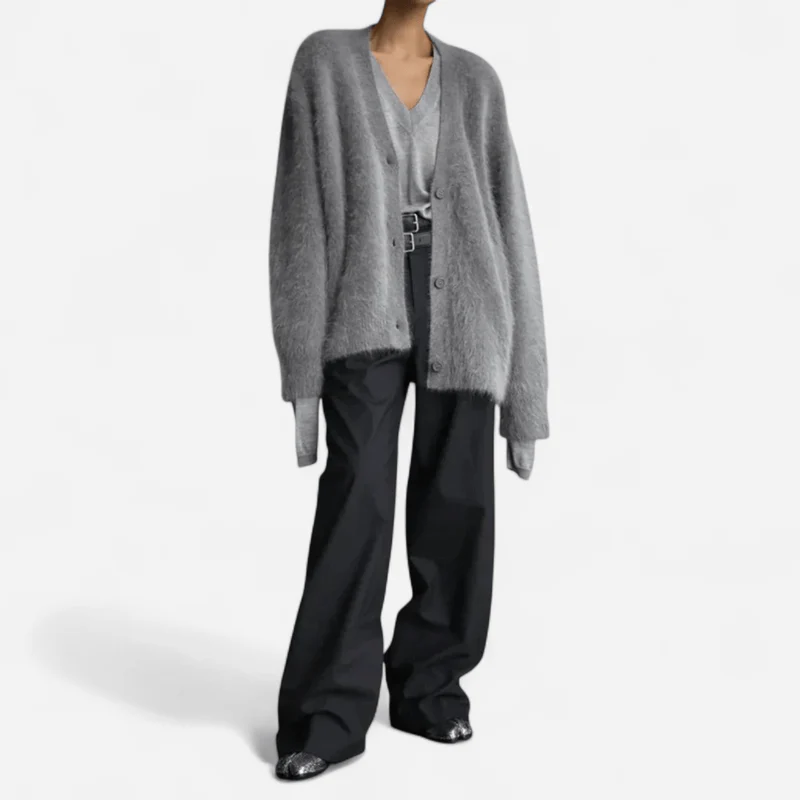 Offrez-vous un confort absolu avec la veste Vergie – Pull en cachemire doux et élégant pour femme, alliant douceur et style. Confectionnée avec soin, cette veste vous enveloppe d’une chaleur réconfortante grâce à ses fibres de cachemire de haute qualité. Parfaite pour se détendre ou pour ajouter une touche chic à votre look quotidien, la Vergie est le choix moderne pour allier confort et élégance, tout en vous offrant une sensation de luxe à chaque instant.