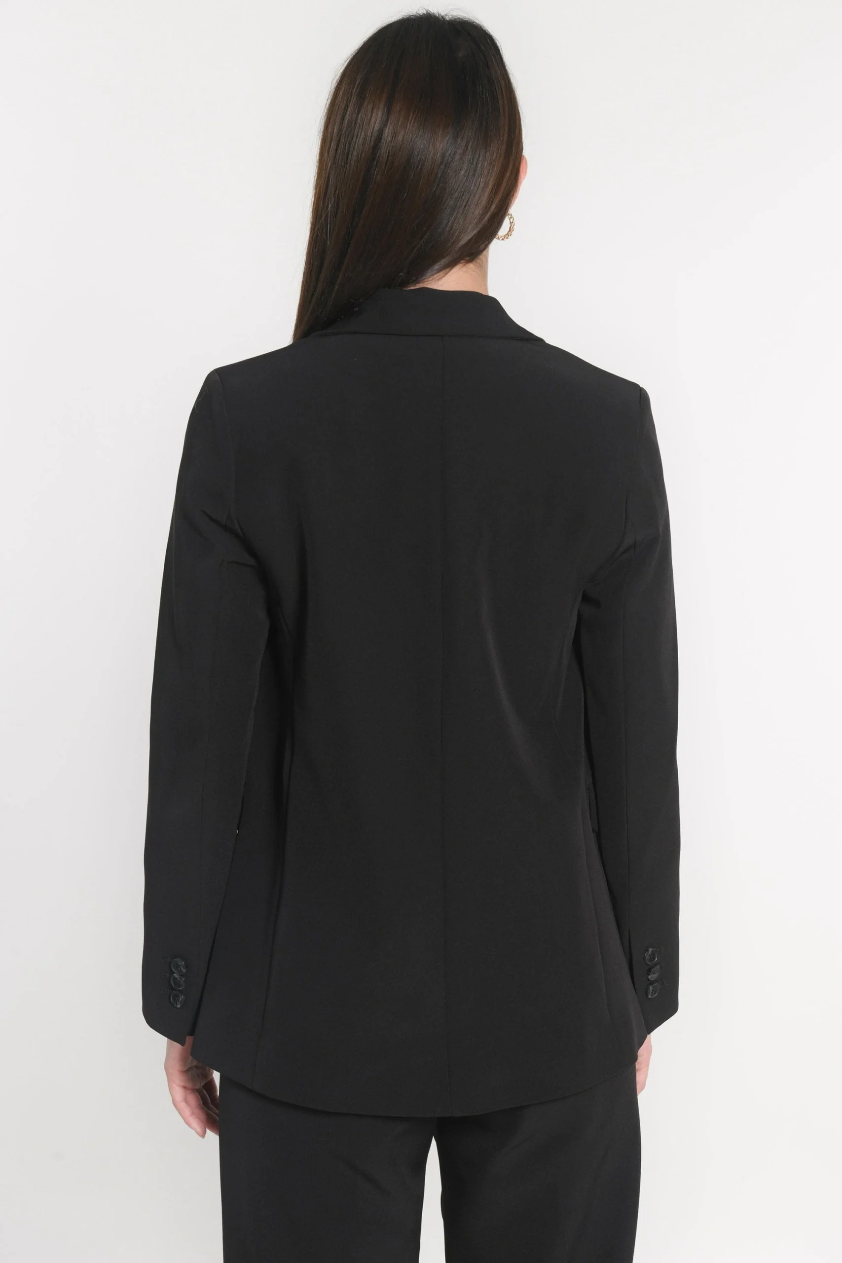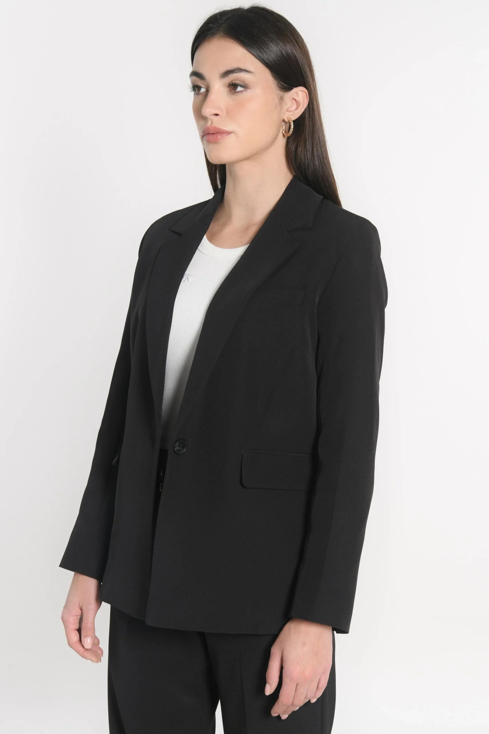 Veste de tailleurTissu avec touche de stretch pour plus de confortA porter seule ou avec l’un des bas assortisCol tailleur, croisure maintenue par un boutonUne poche poitrine et deux poches à rabatFines épaulettes, manches tailleur avec poignet fermé par trois boutonsCoupe légèrement cintréeLongueur 72cm en T0