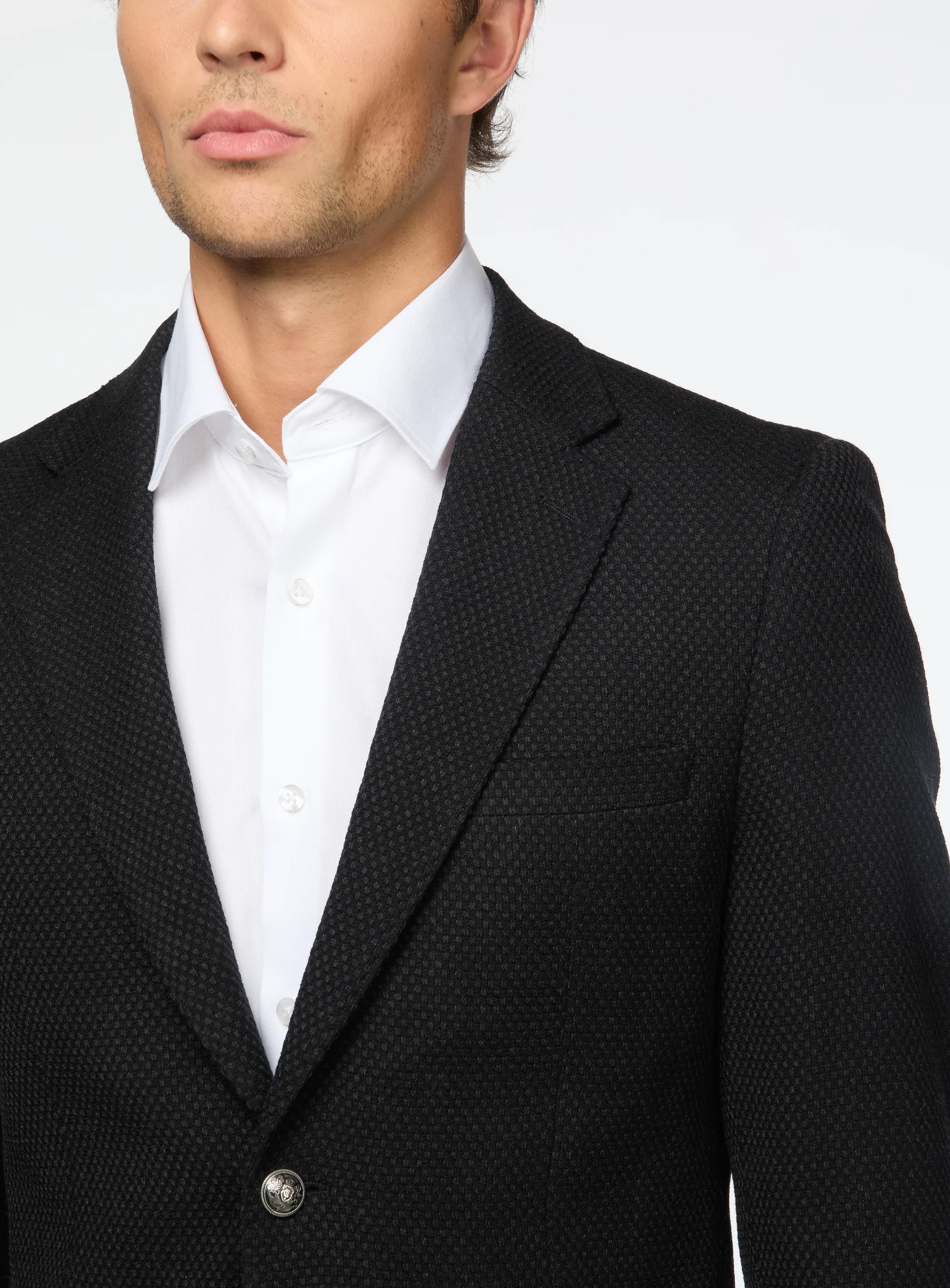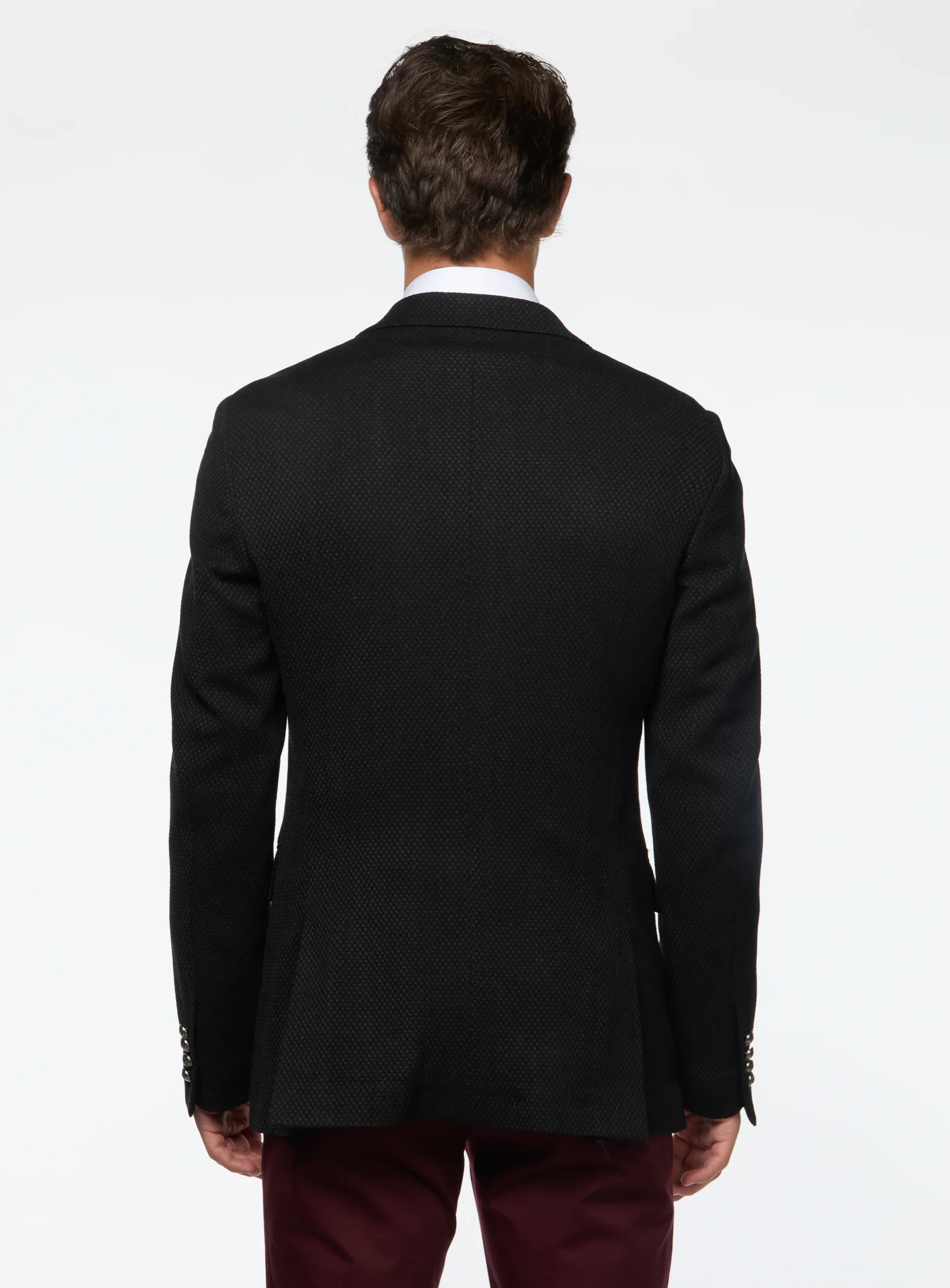 DESCRIPTION– Tissu italien– En exclusivité chez Ernest– Coupe ajustée– Motif à faux uni– Poches à rabats– Revers cranté– Deux fentes latérales– Semi doublé MATÉRIELTissu: 96% Laine, 3% Élasthanne et 1% CachemireDoublure: 100% Polyester ENTRETIENNettoyage à sec