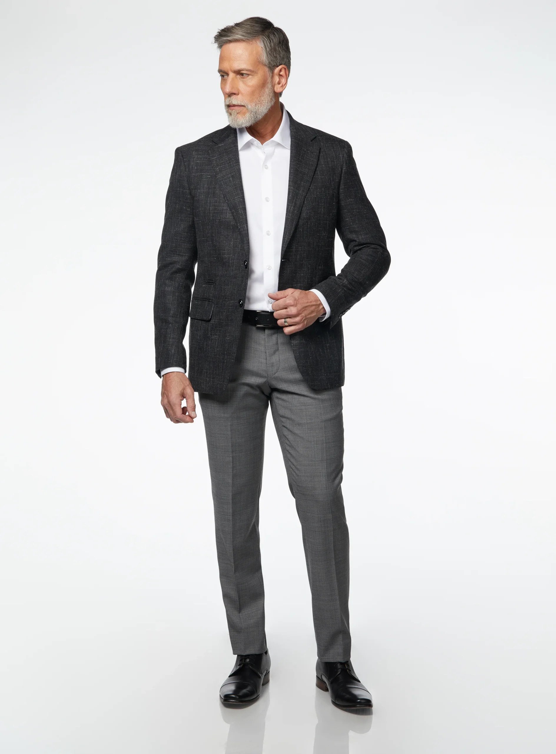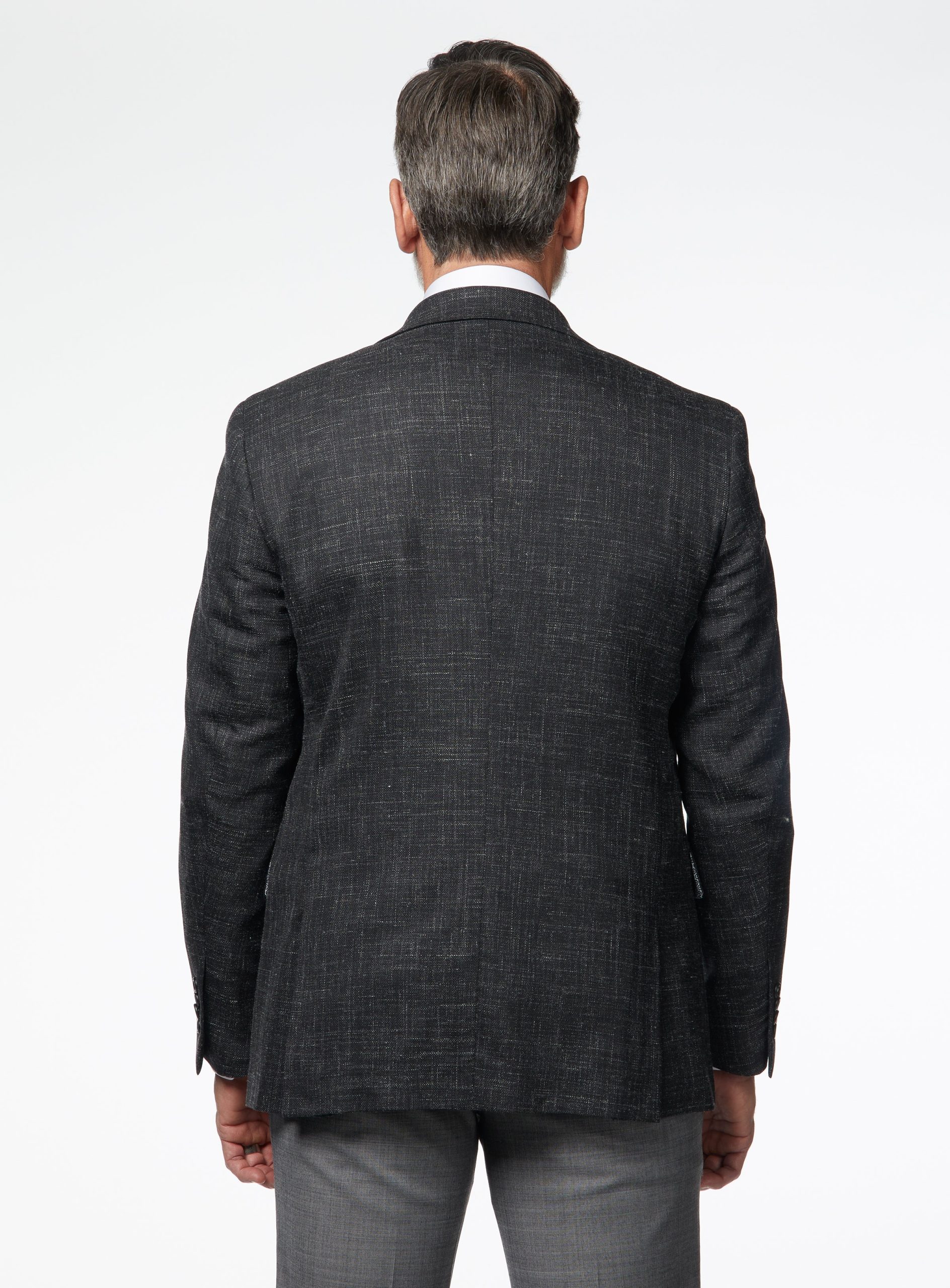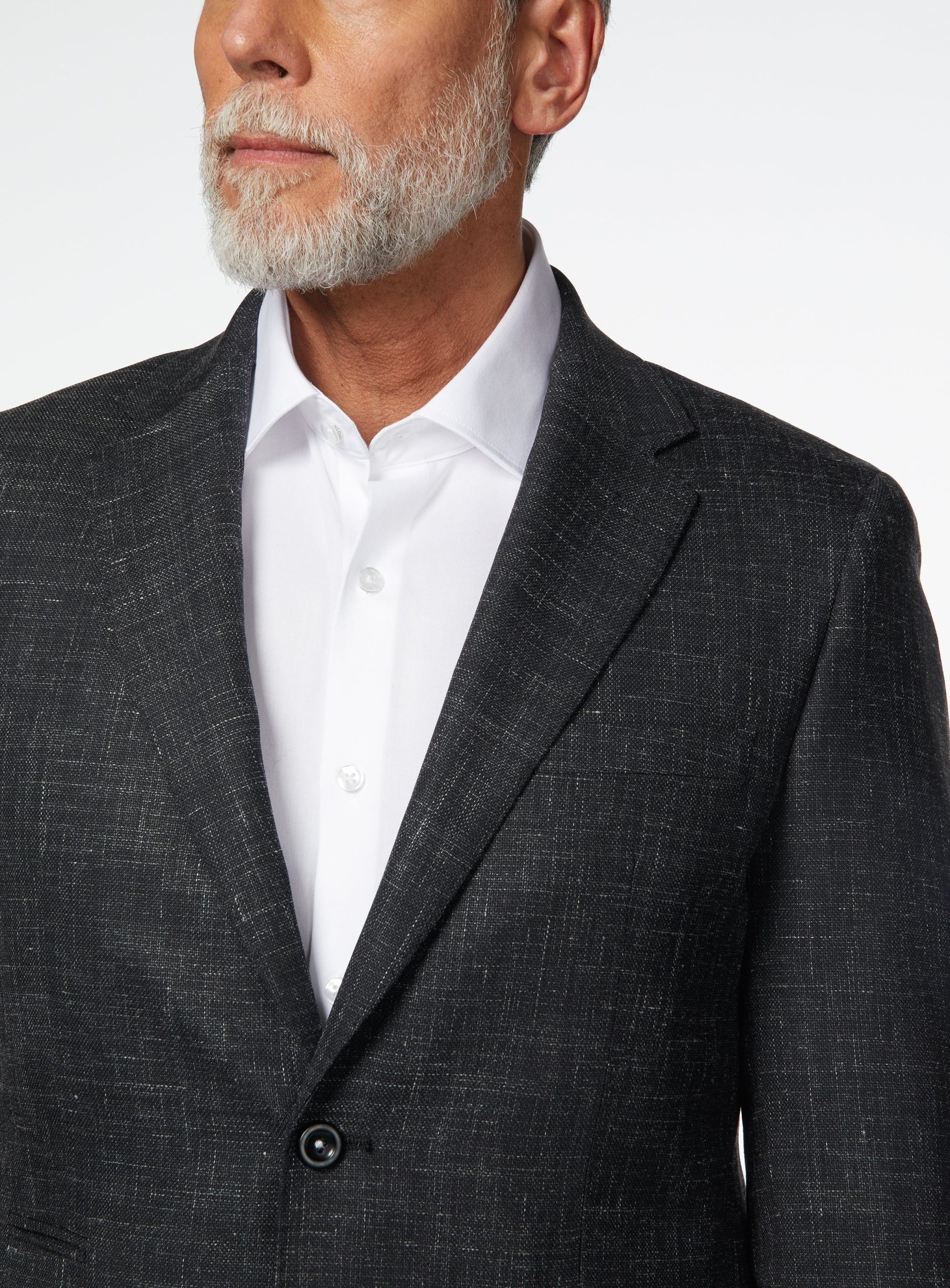 DESCRIPTION– Tissu italien– En exclusivité chez Ernest– Coupe ajustée– Motif à faux uni– Poches à rabats– Revers cranté– Deux fentes latérales– Semi doublé MATÉRIELTissu: 92% Laine, 6% Soie et 2% ÉlasthanneDoublure: 100% Polyester ENTRETIENNettoyage à sec